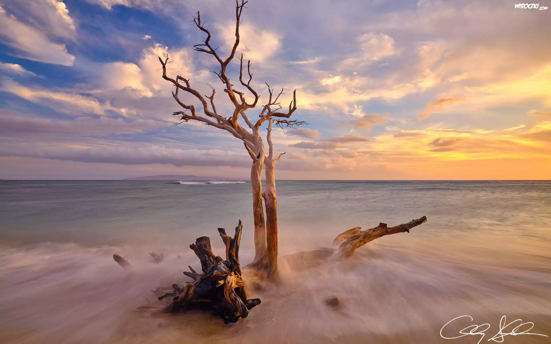 Zdjęcia, Morze, Uschnięte, Drzewo, Konar