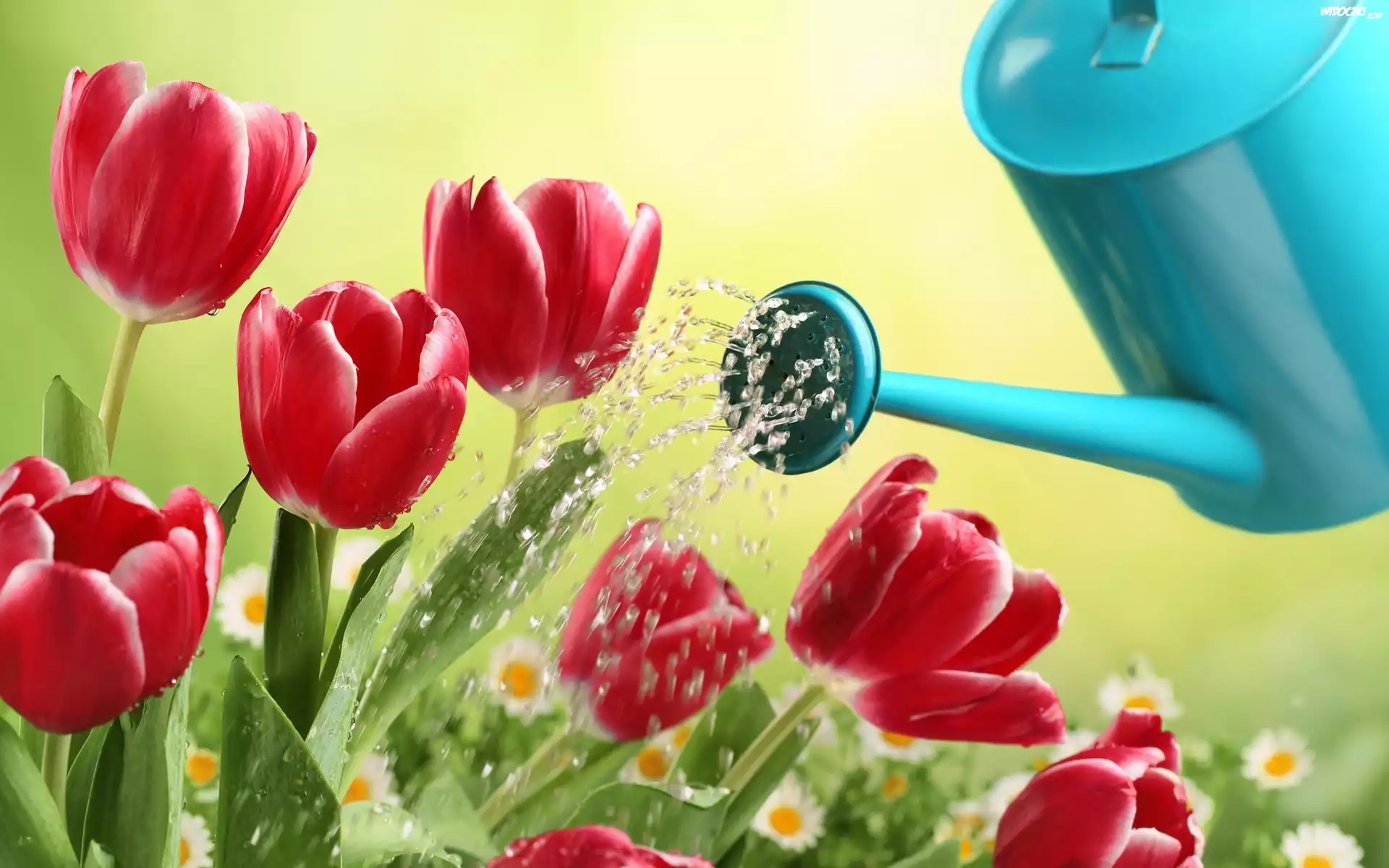 Zdjęcia, Tulipany, Konewka, Ogród