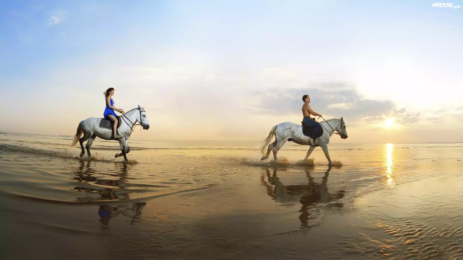 Zdjęcia, Konie, Morze, Brzeg, Jeźdźcy