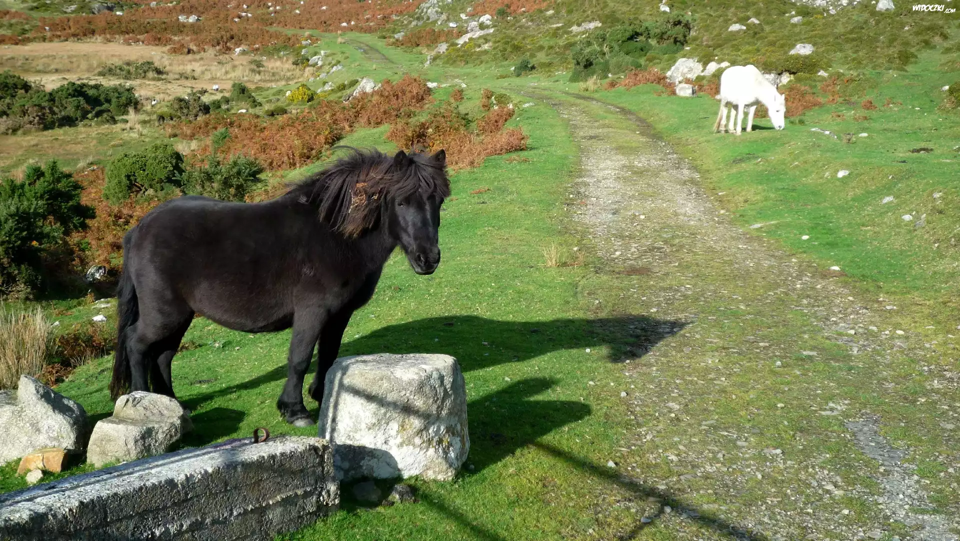 Zdjęcia, Konie, Polna, Droga, Kamienie