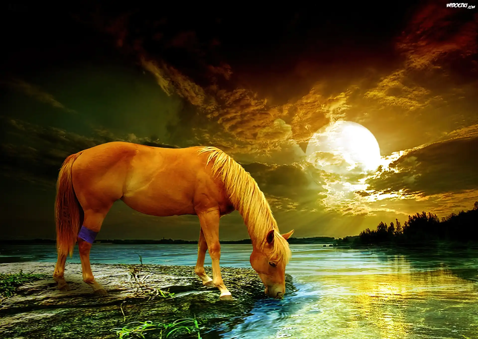 Konik, Rzeka, Chmury, Księżyc