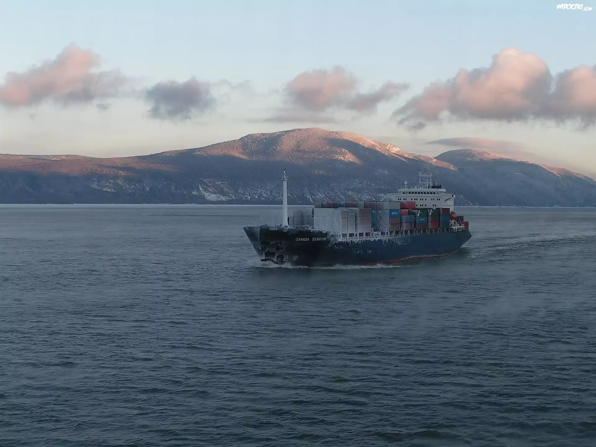 Zdjęcia, Kontenerowiec, Pokryty, Lodem, Góry, Ocean