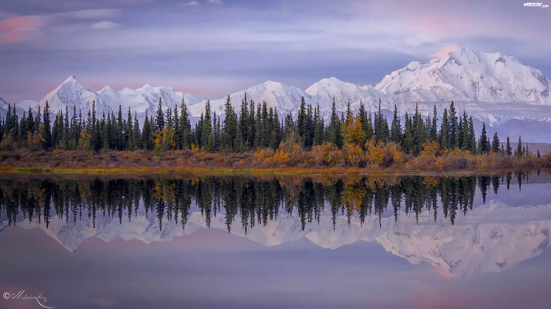 Park Narodowy Denali, Góry, Kordyliery, Góra Denali, McKinley, Drzewa, Las, Rzeka, Alaska, Stany Zjednoczone |