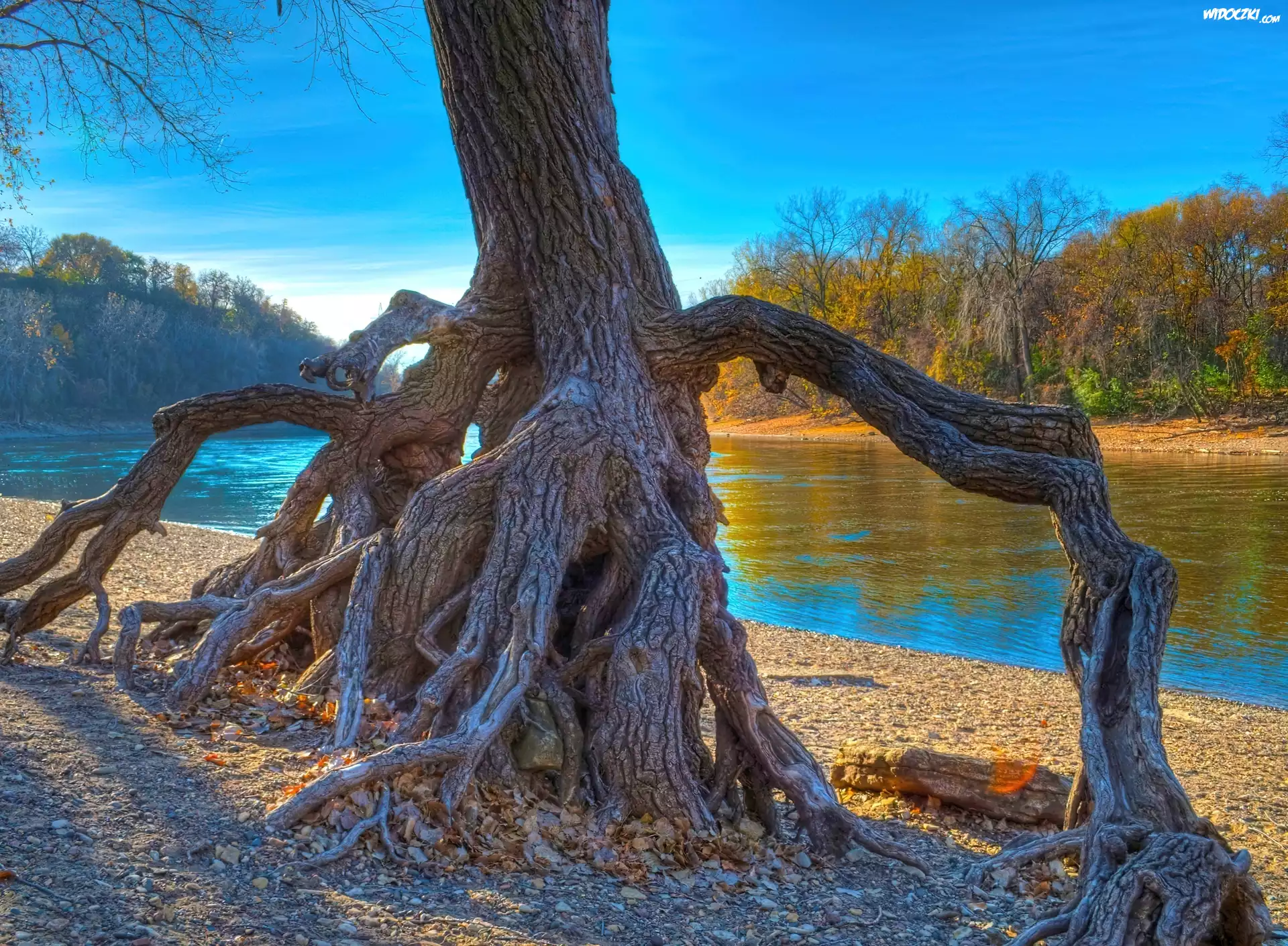 Zdjęcia, Drzewo, Korzenie, Rzeka
