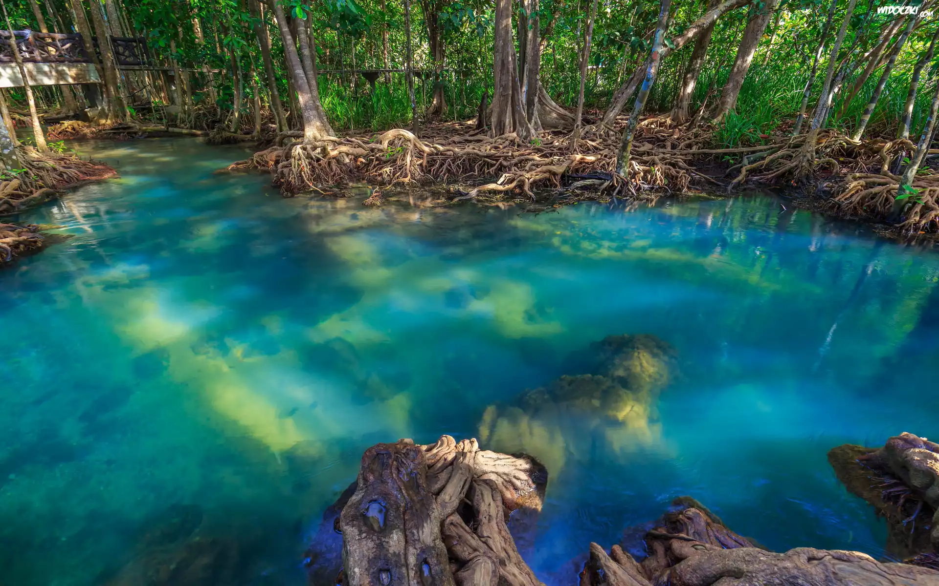 Zdj臋cia, Las, Jezioro, Drzewa, Korzenie