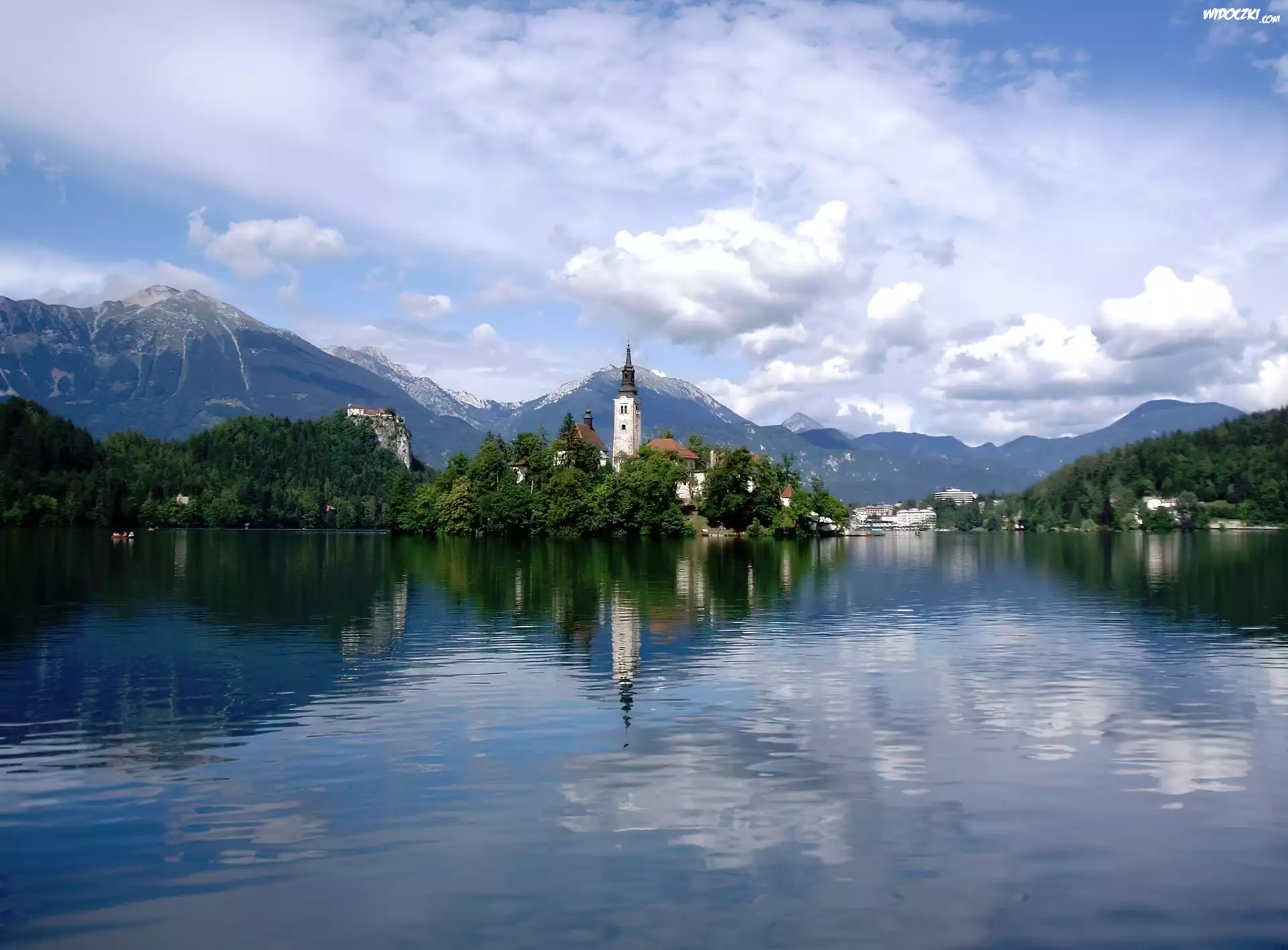 Zdjęcia, Kóściół, Góry, Jezioro, Bled, Słowenia