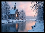 Zdjęcia, Rzeka, Kościół, Drzewa, Zima, AI