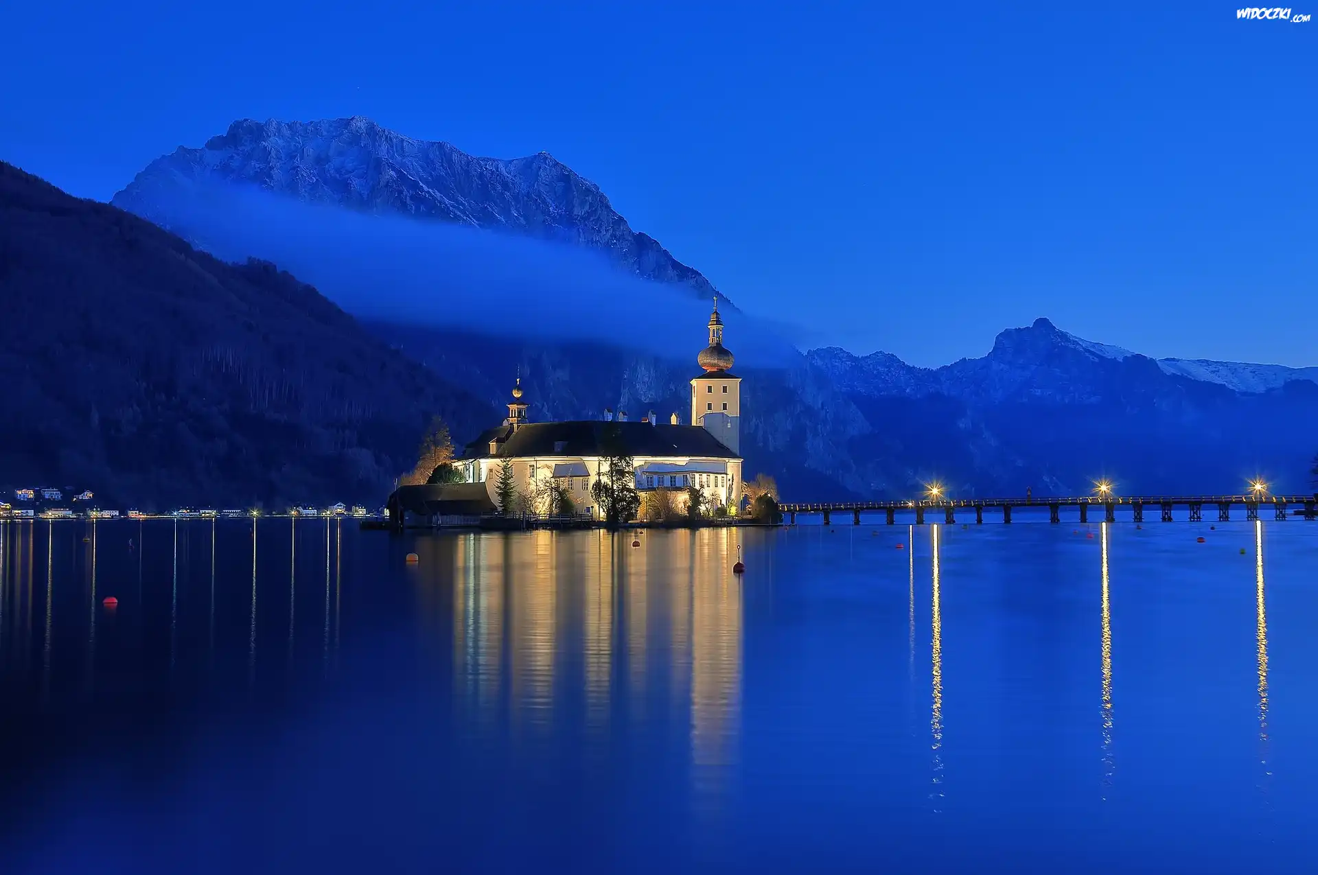 Zdjęcia, Austria, Gmunden, Zamek Ort, Góry, Jezioro Traunsee