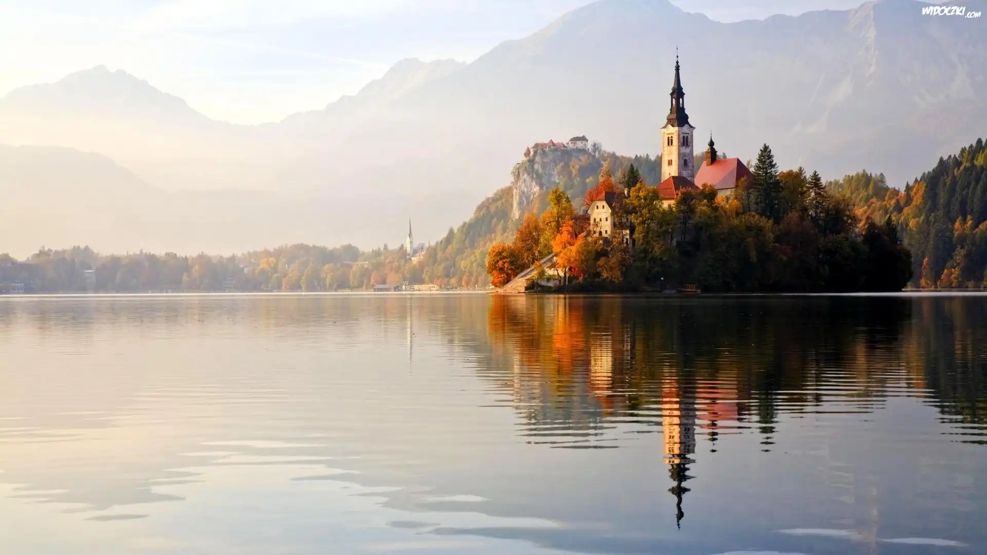 Zdjęcia, Kościół, Wyspa, Góry, Jesień, Jezioro