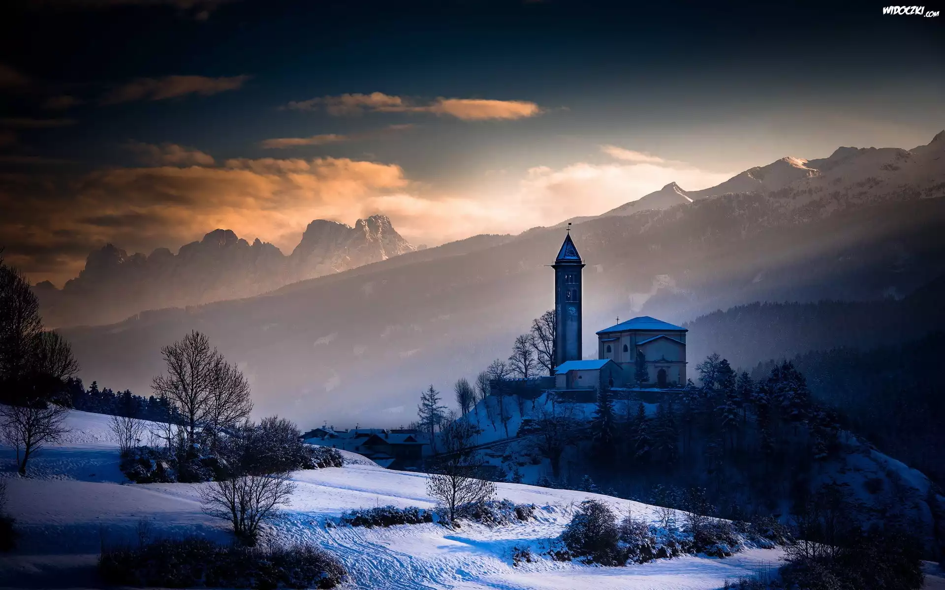 Zdjęcia, Kościół, Góry, Lasy, Zima