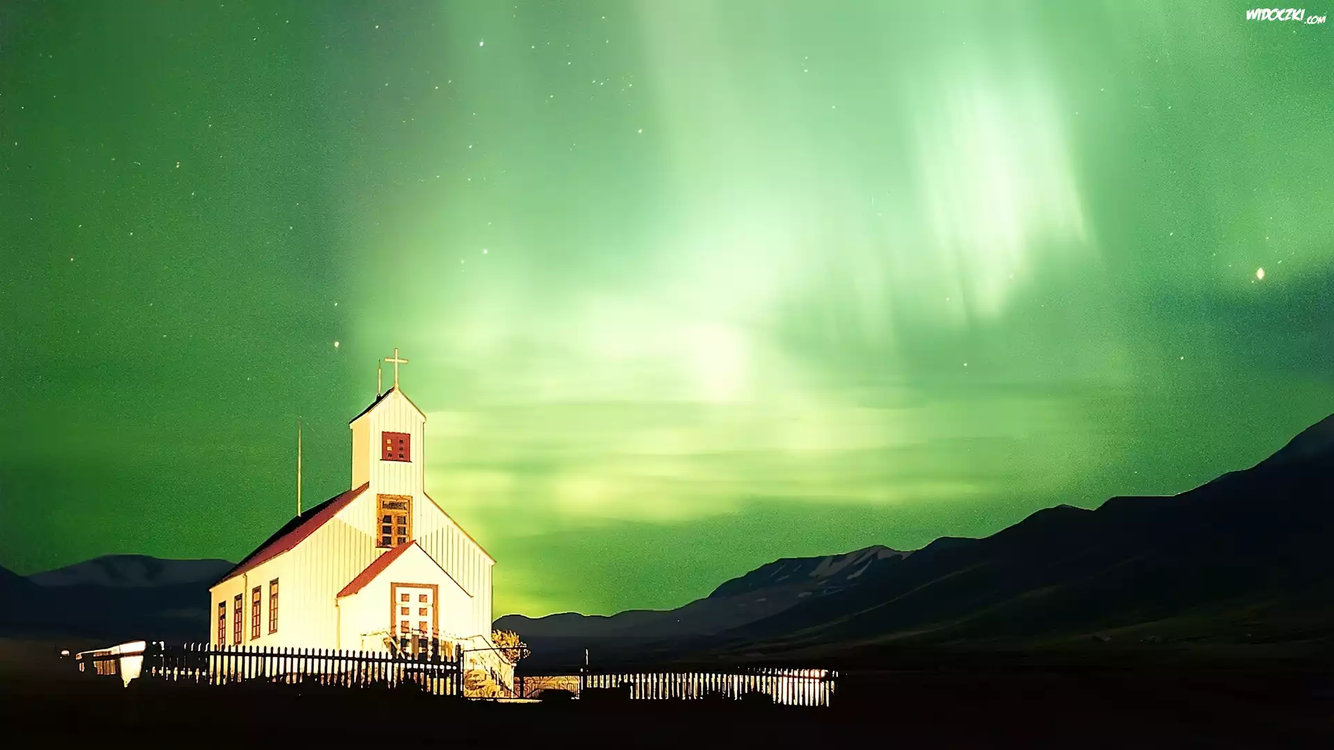 Zdjęcia, Kościół, Góry, Zorza, Polarna