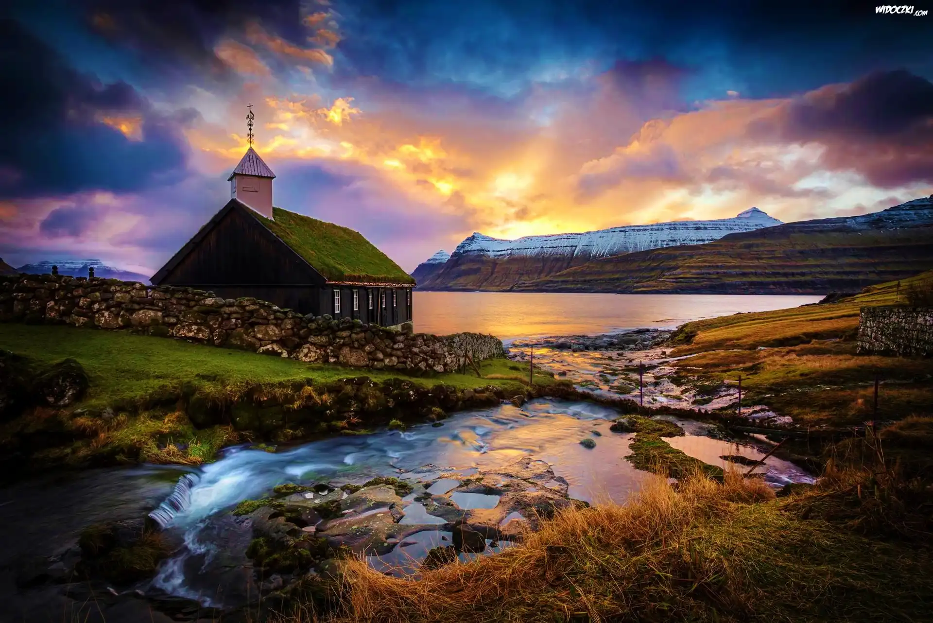 Zdjęcia, Kościółek, Rzeka, Góry, Niebo