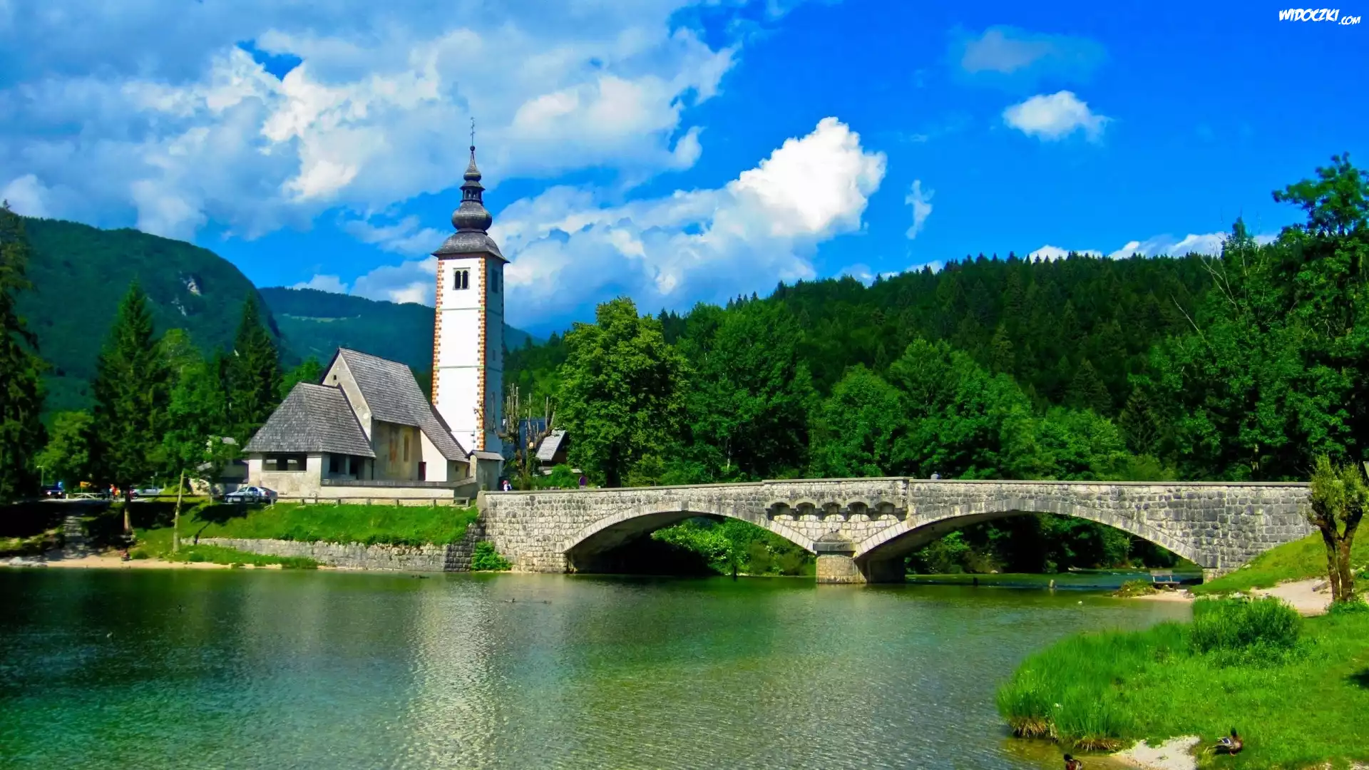 Zdjęcia, Most, Jezioro Bohinj, Kościółek św. Jana, Gmina Bohinj, Słowenia
