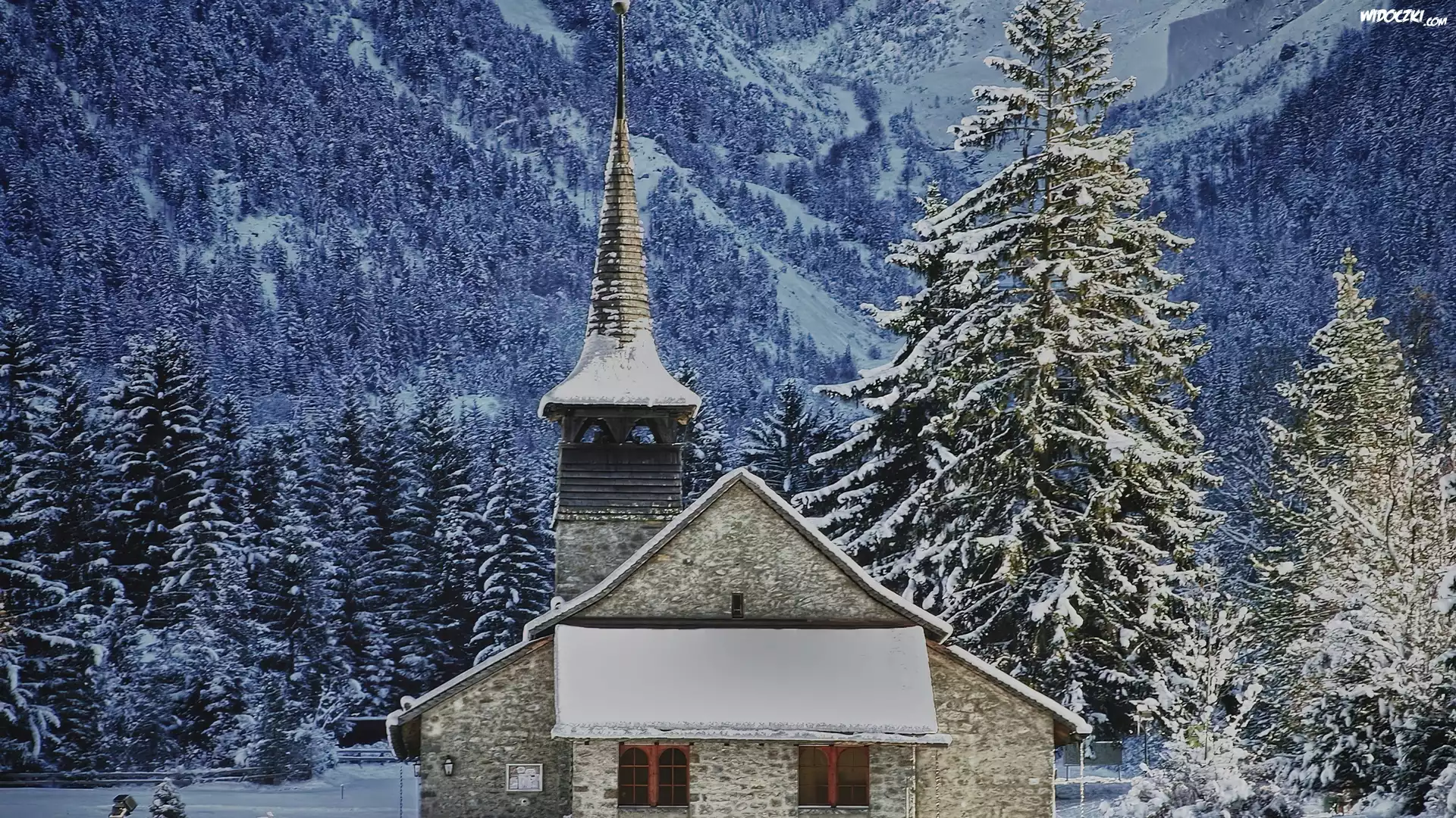 Kościółek, Las, Śnieg, Zima