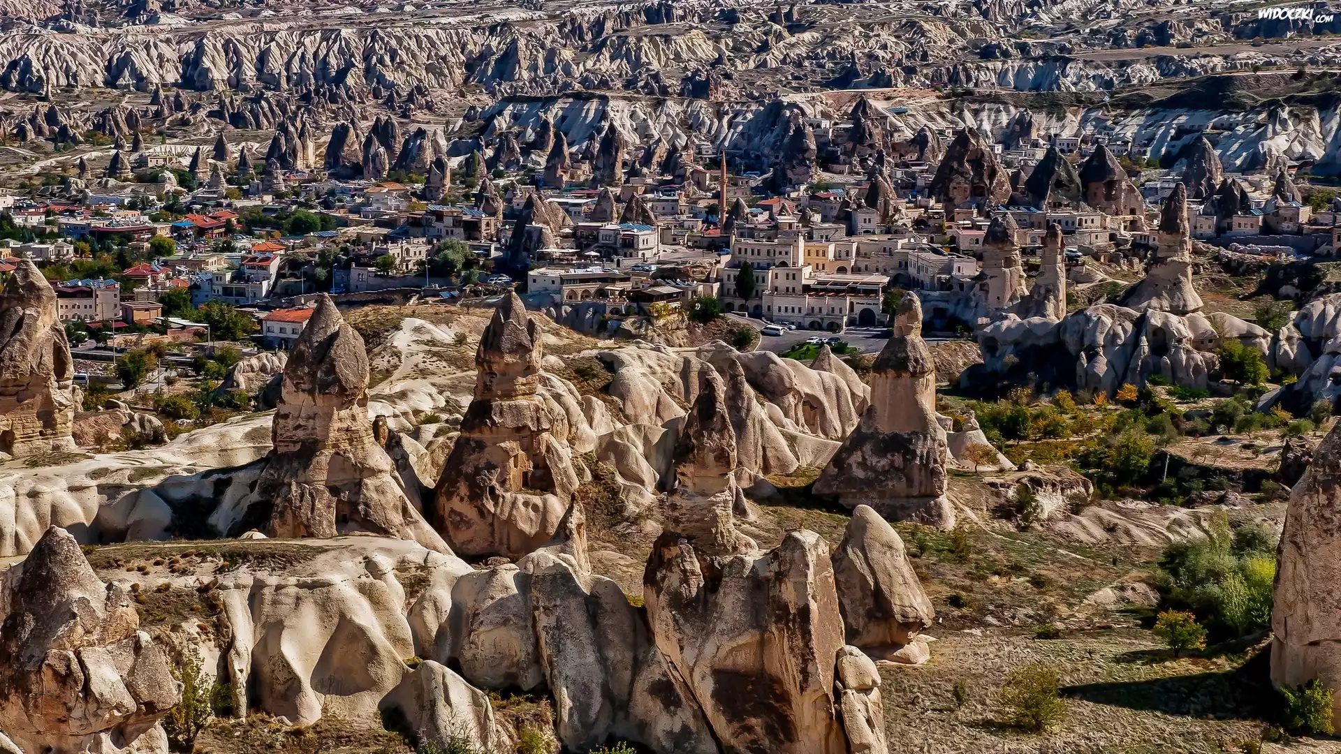 Turcja, Kapadocja, Park Narodowy Göreme, Góry, Skały, Kościoły