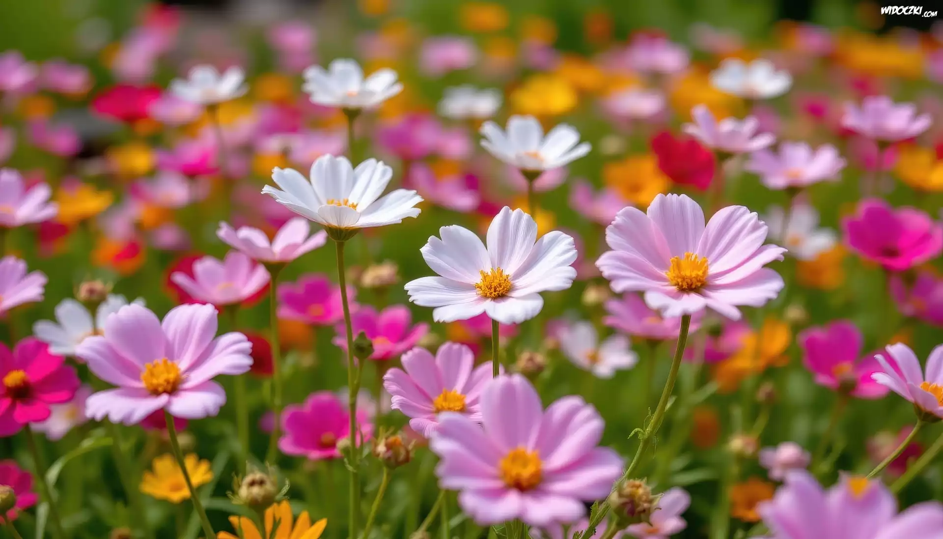 Kwiaty, Białe, Różowe, Kosmea