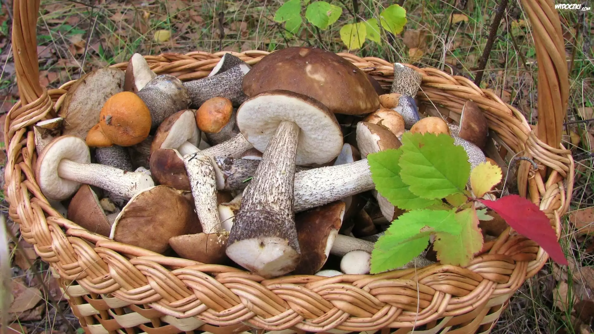 Zdjęcia, Kosz, Grzybów, Las, Jesienne, liście