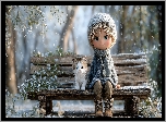 Zdjęcia, Dziewczynka, Kot, Ławka, Grafika AI