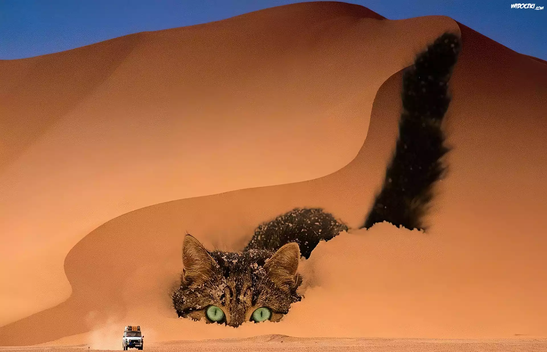 Zdj臋cia, Kot, Zielone, Oczy, Pustynia