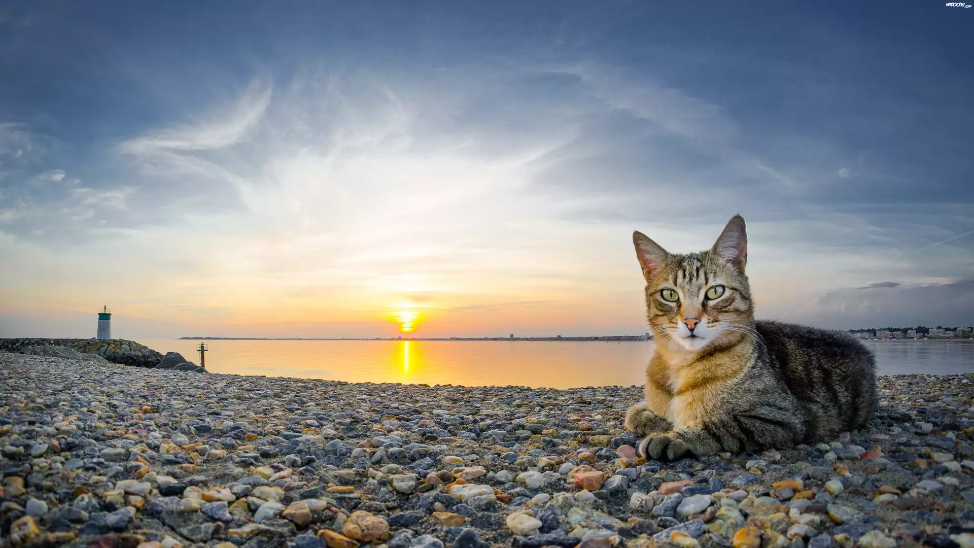 Zdjęcia, Kot, Wybrzeże, Latarnia, Morska, Wschód, Słońca