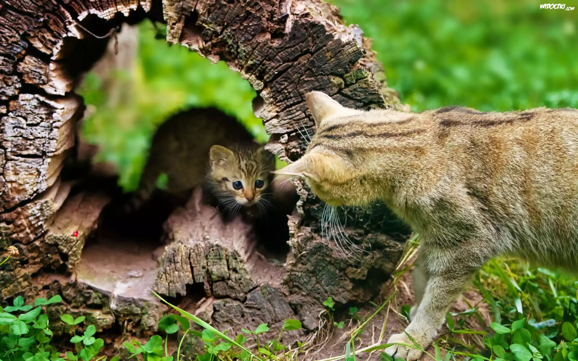 Koty, Pień, Drzewa, Łąka