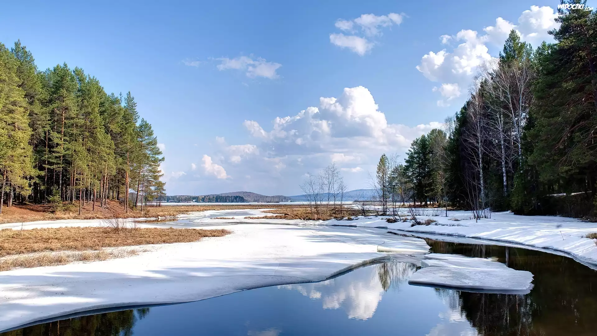 Zdj臋cia, Kra, Rzeka, Brzegi, Choinki