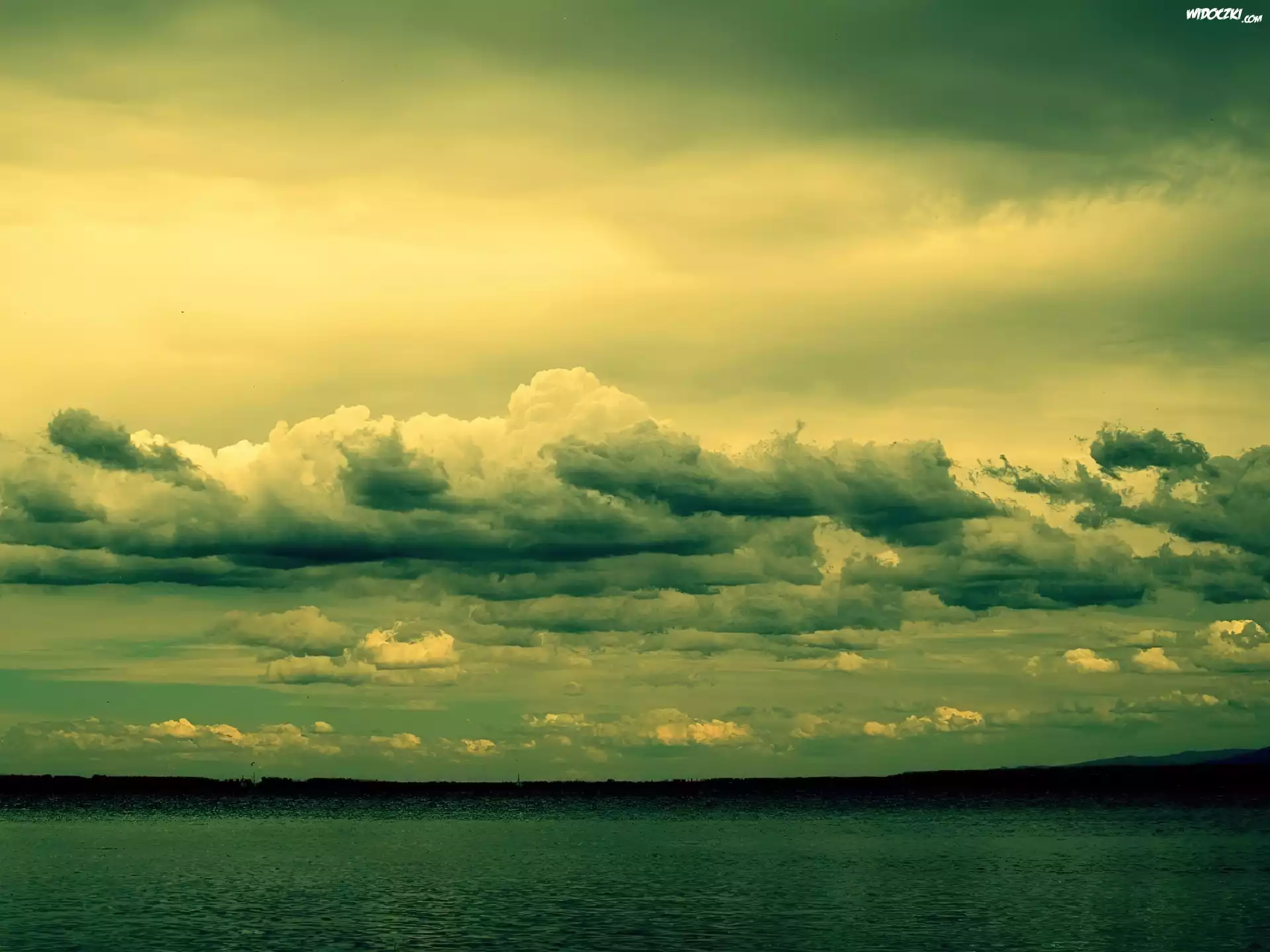 Krajobraz, Lato, Niebo, Chmury, Jezioro