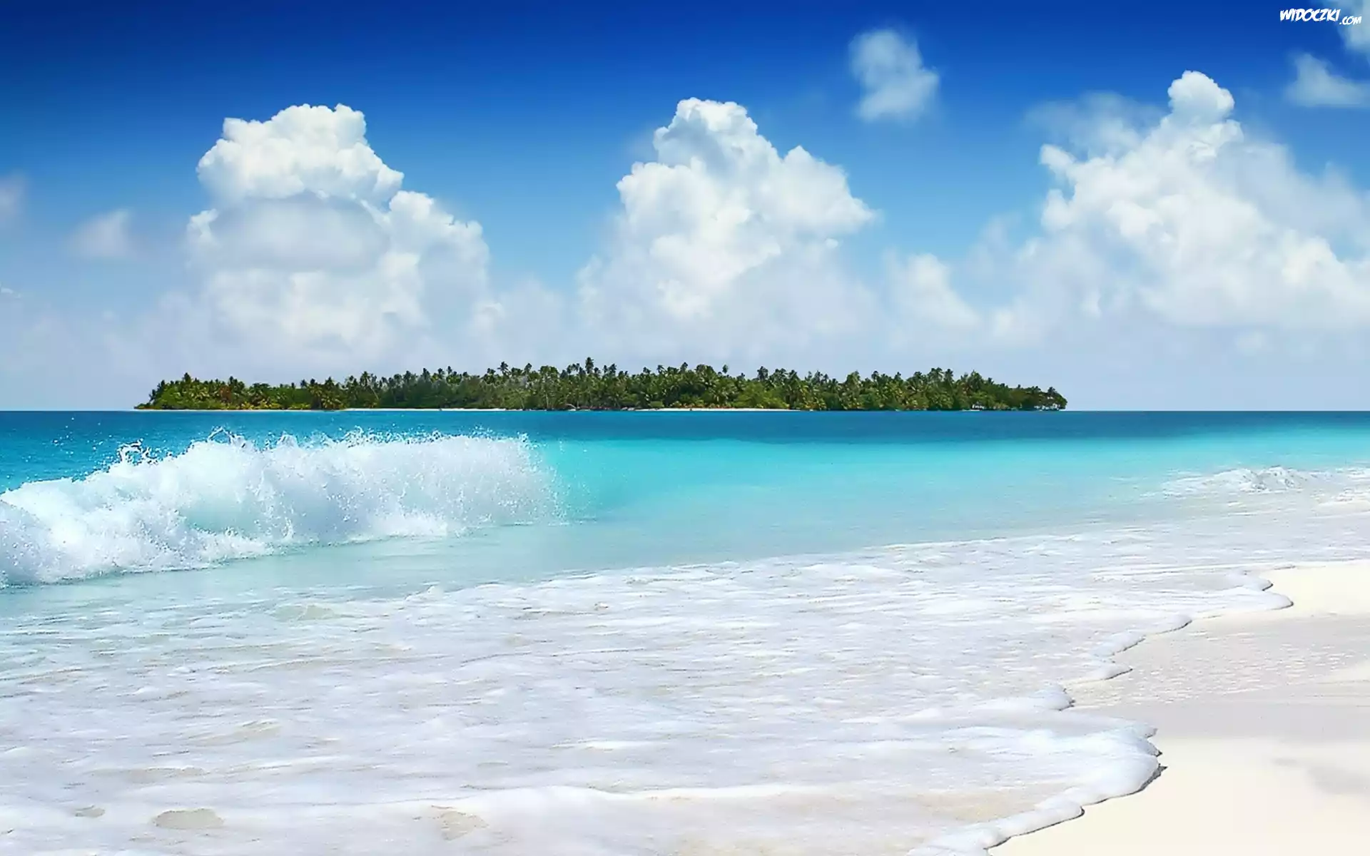 Zdj臋cia, Krajobraz, Chmury, Niebo, Fale, Morze, Wyspa