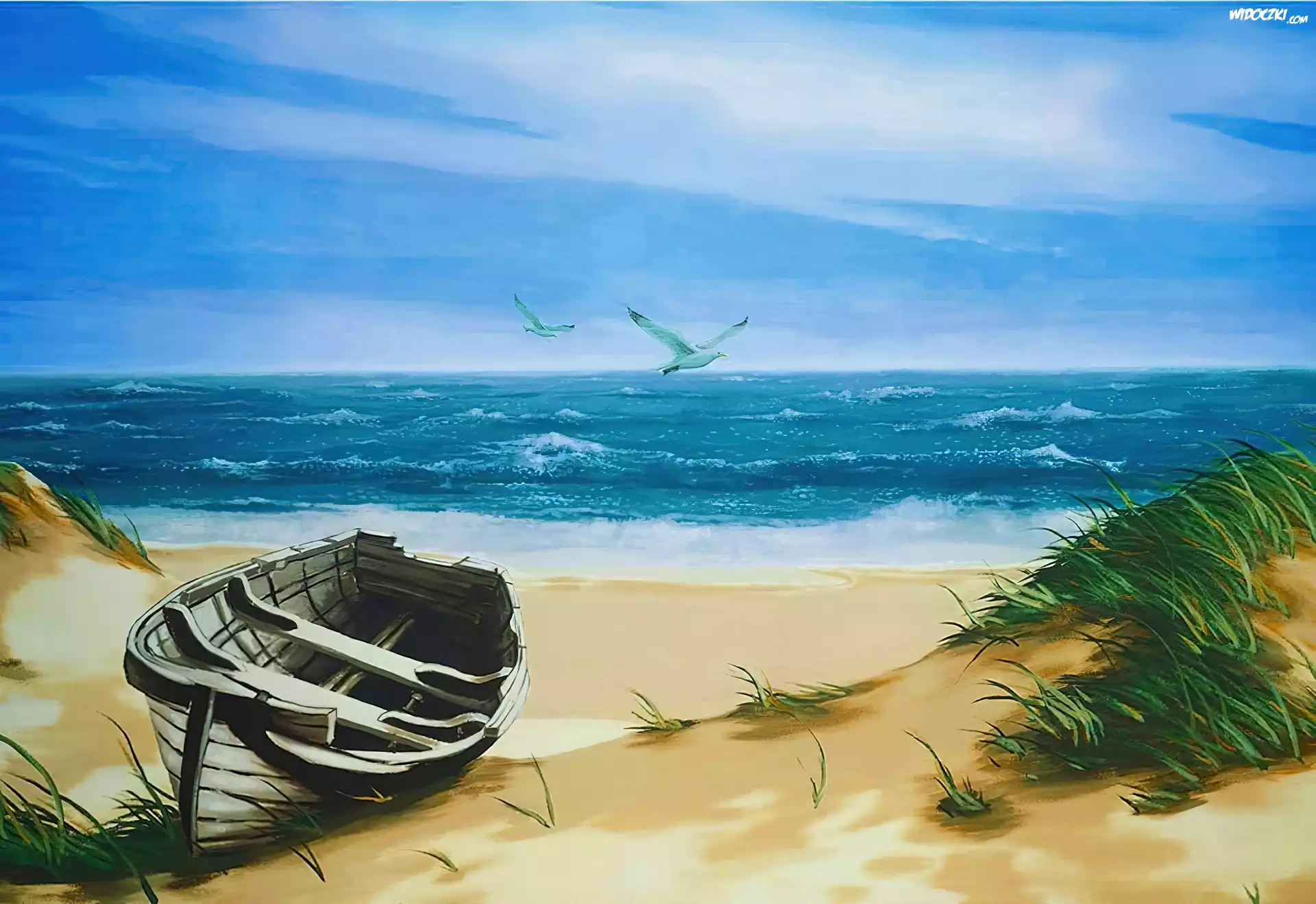 Zdjęcia, Krajobraz, Plaża, Łódka, Morze