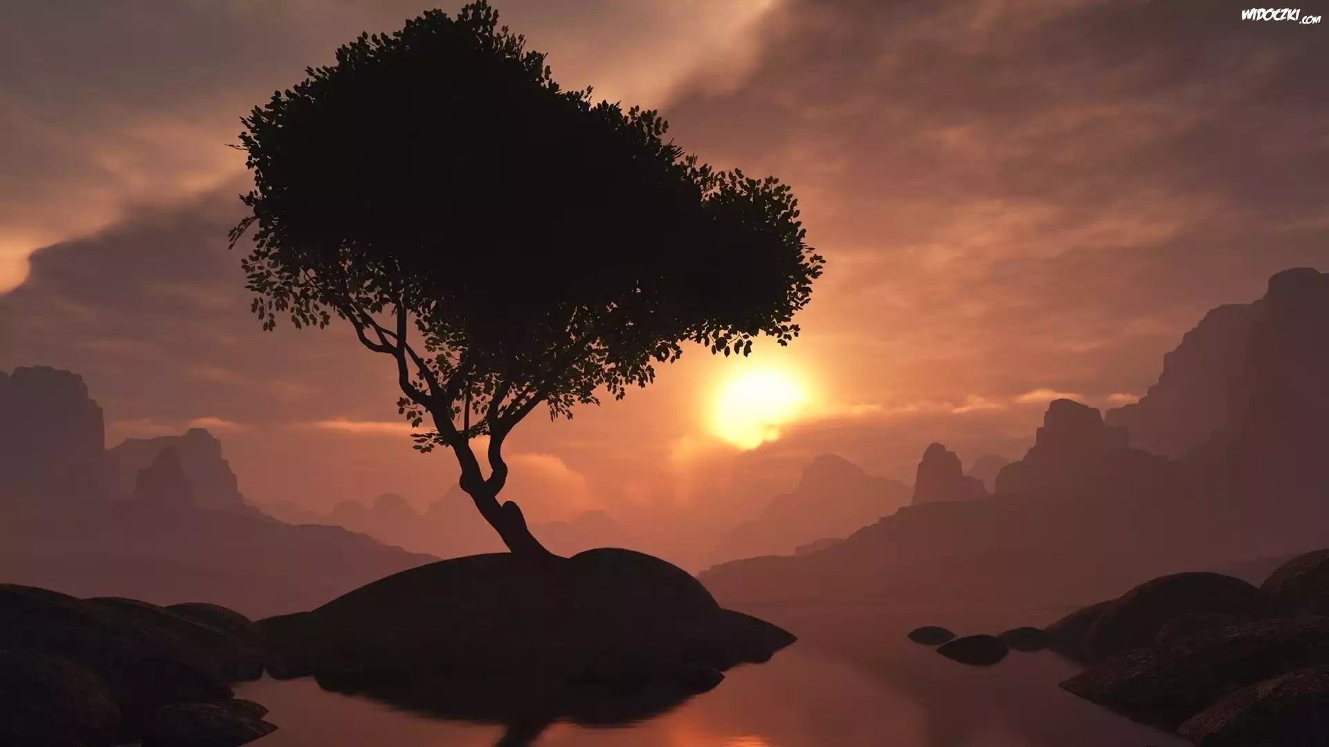 Zdjęcia, Krajobraz, Zachód, Słońca, Drzewo