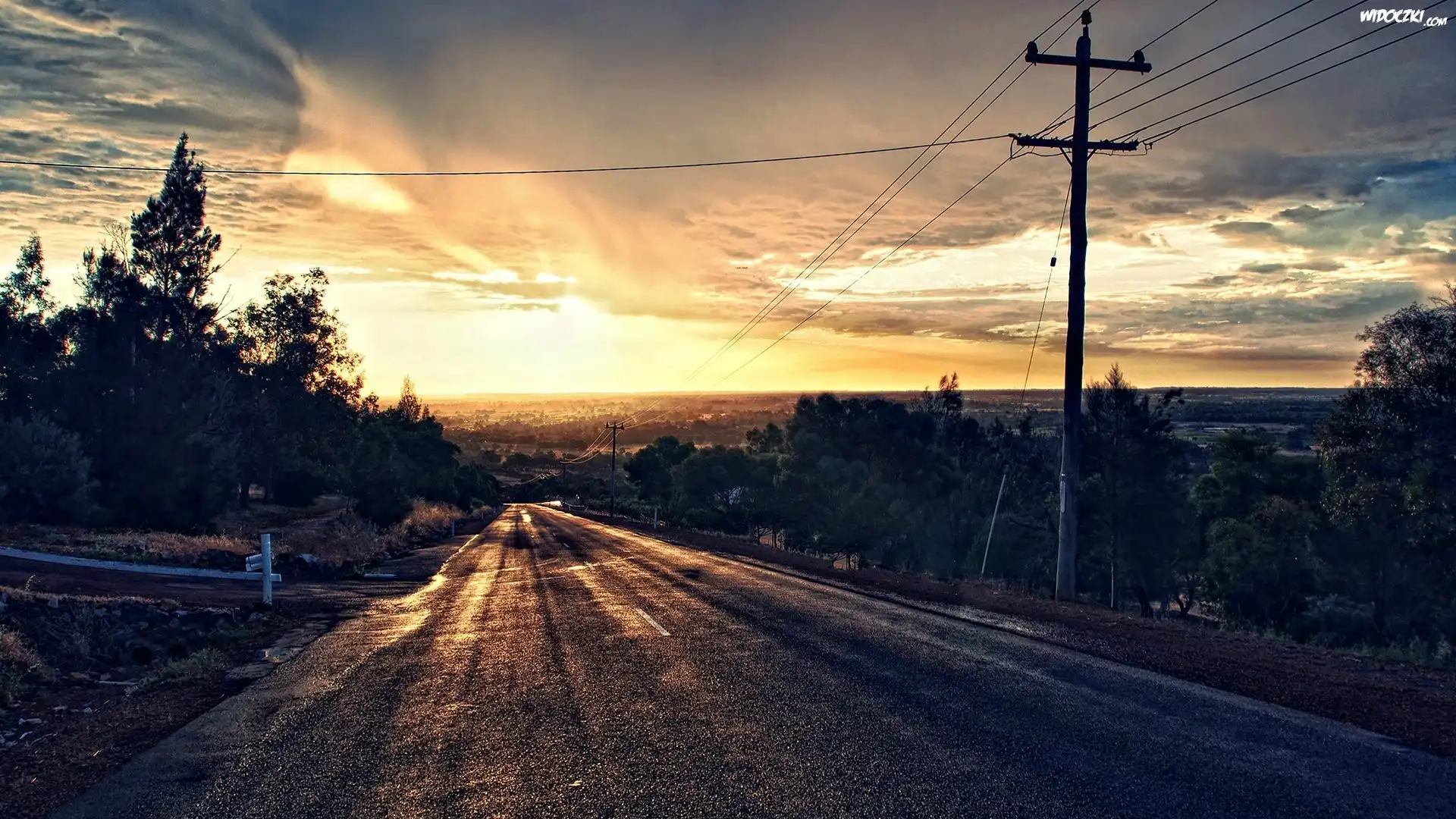 Zdjęcia, Krajobraz, Droga, Niebo, Zachód, Słońca