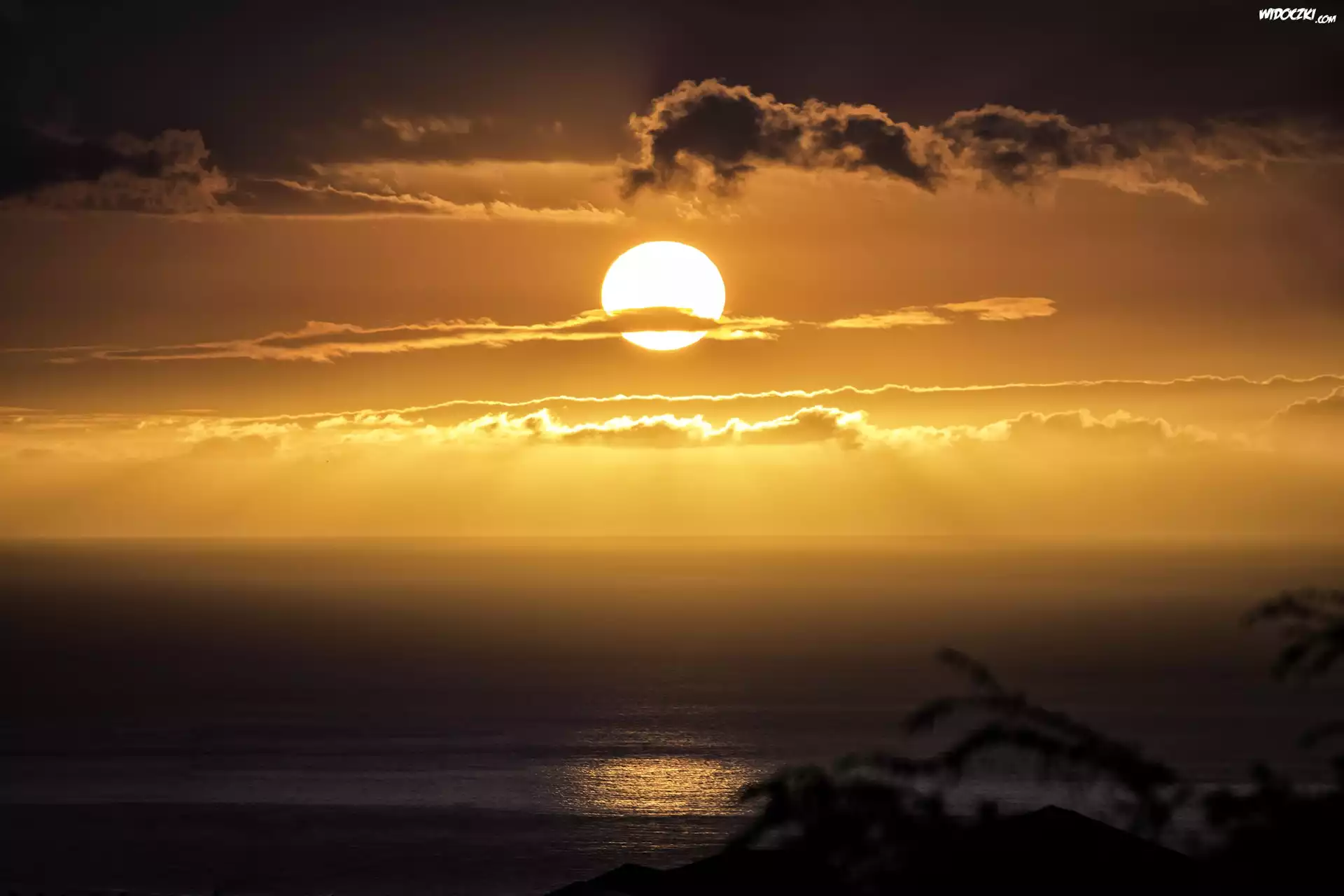 Krajobrazy, Chmury, Morze, Zachod Slonca
