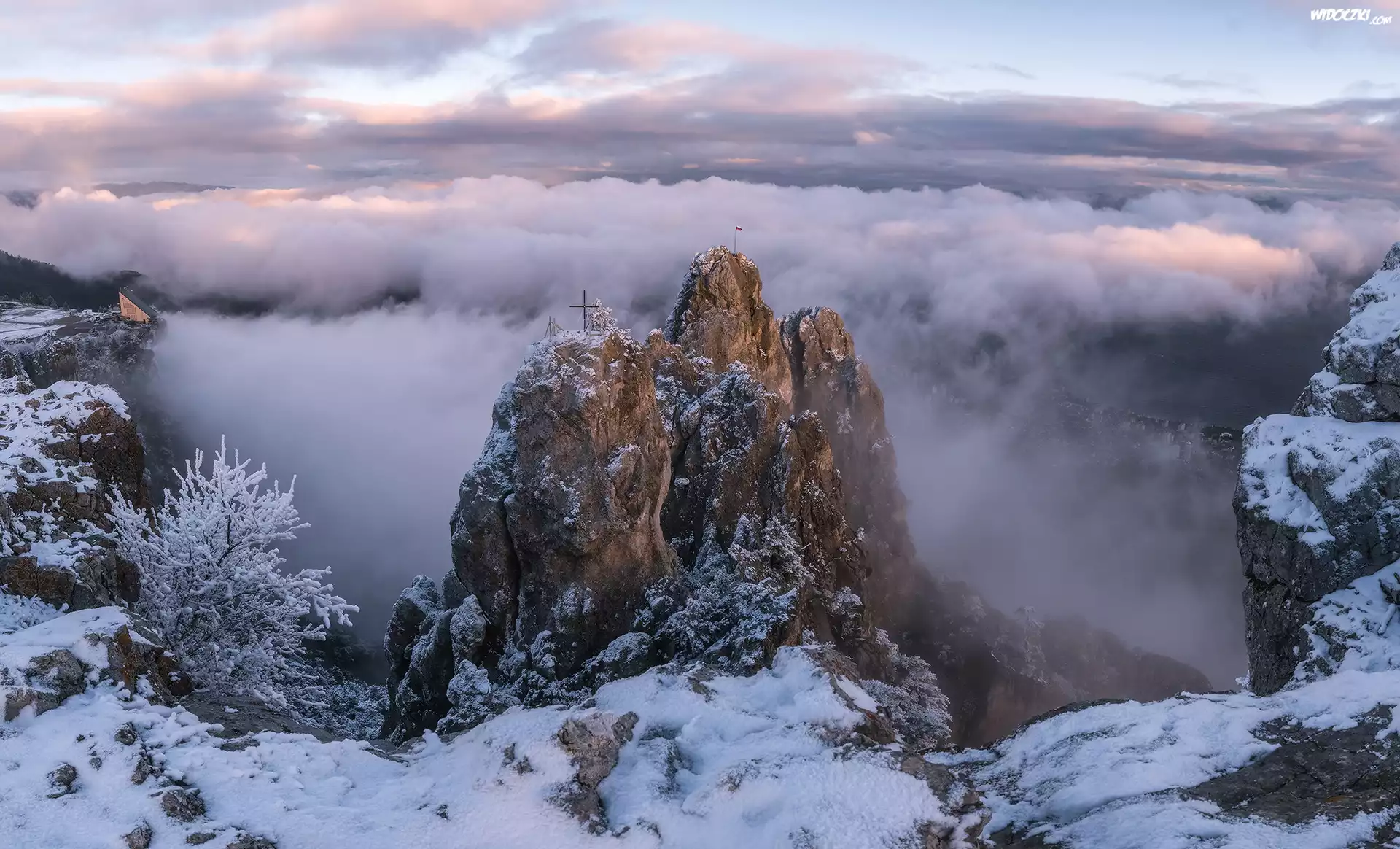 Góry Krymskie, Szczyty Aj-Petri, Skały, Krzyż, Zima, Mgła, Krym