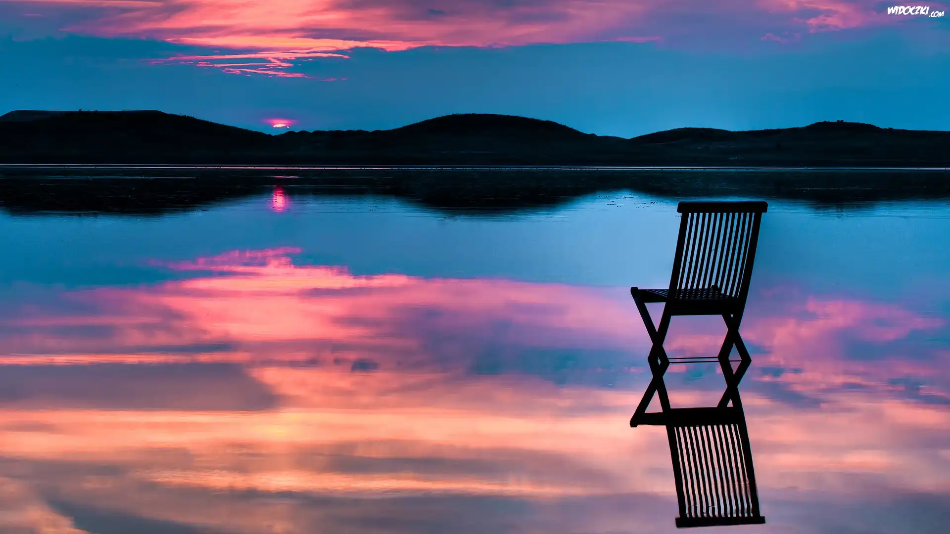 Krzesło, Jezioro, Zachód Słonca