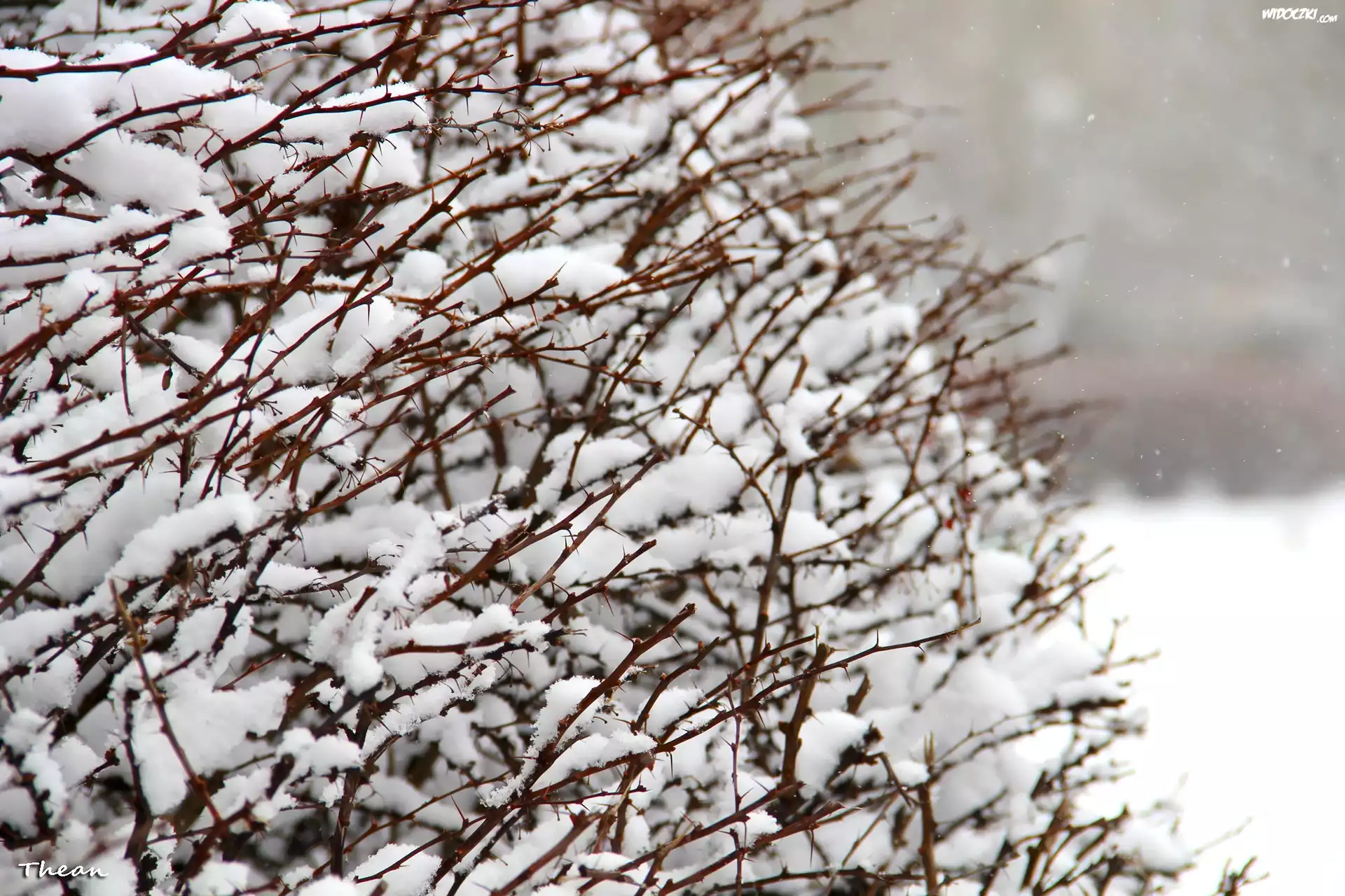 Zdjęcia, Krzew, Kolce, Śnieg, Zima