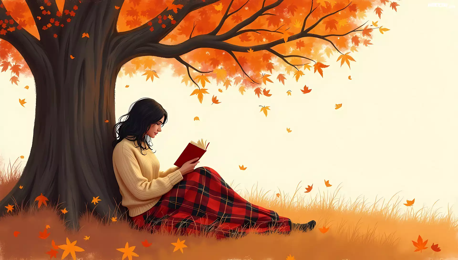Jesień, Dziewczyna, Spódnica, Książka, Drzewo, Grafika