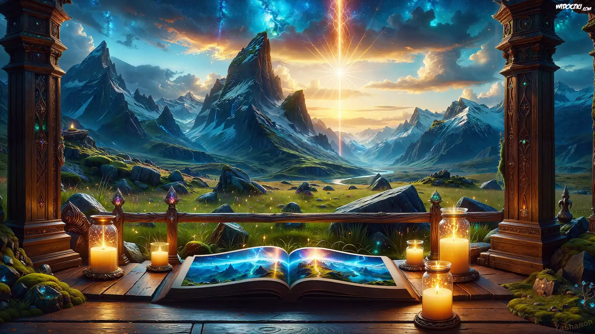 Zdjęcia, Grafika, Góry, Kolumny, Książka, Światło, Świece