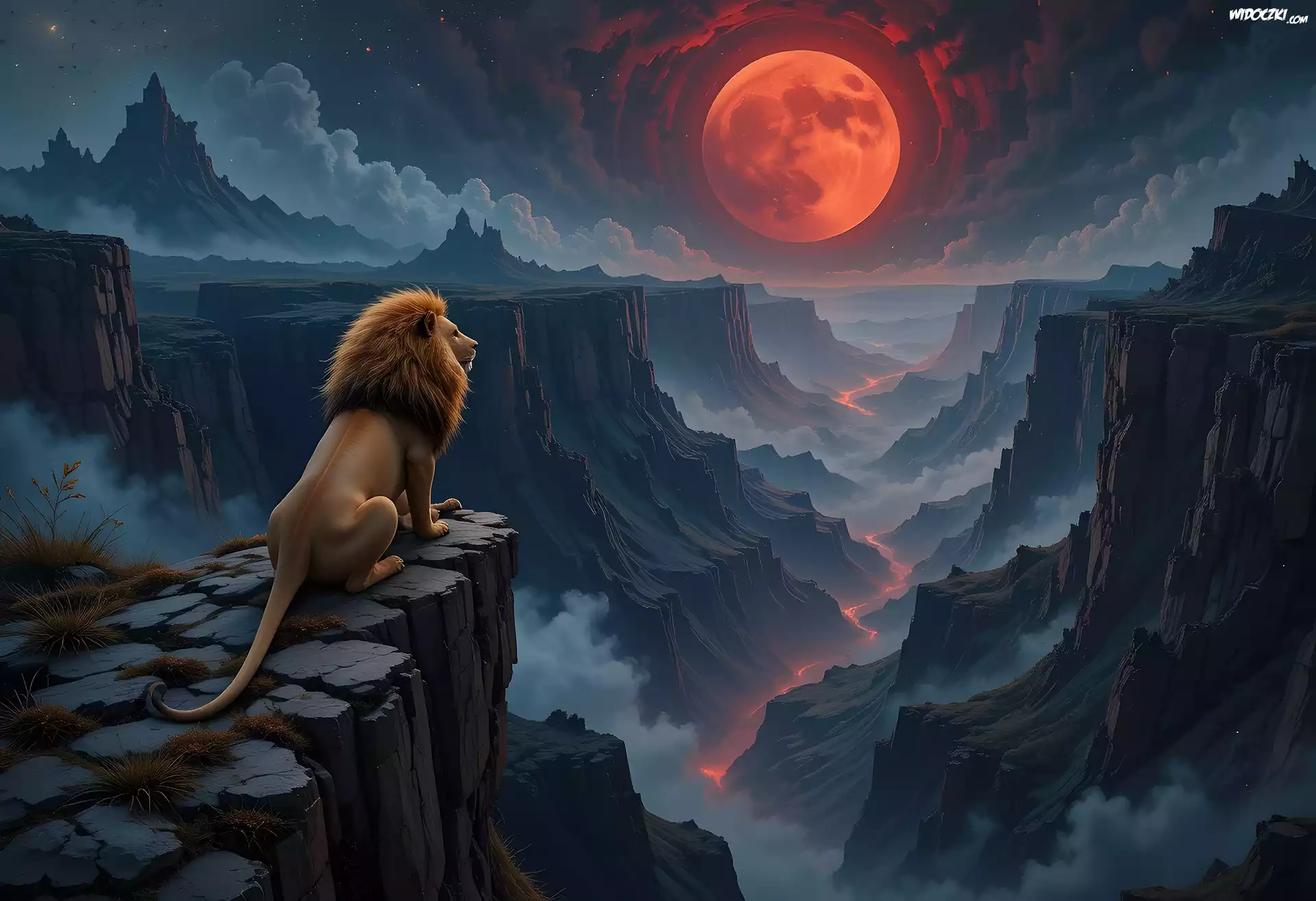 Zdjęcia, Góry, Skały, Lew, Księżyc, Grafika, Kanion