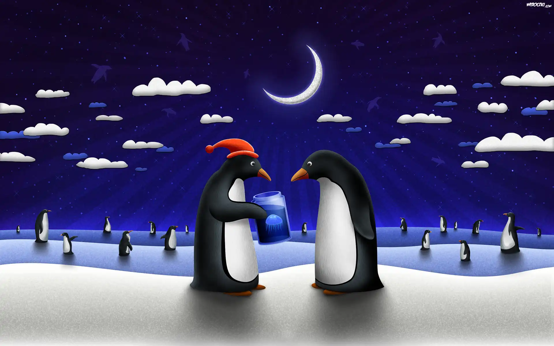 Zdjęcia, Pingwiny, Księżyc, Czapka