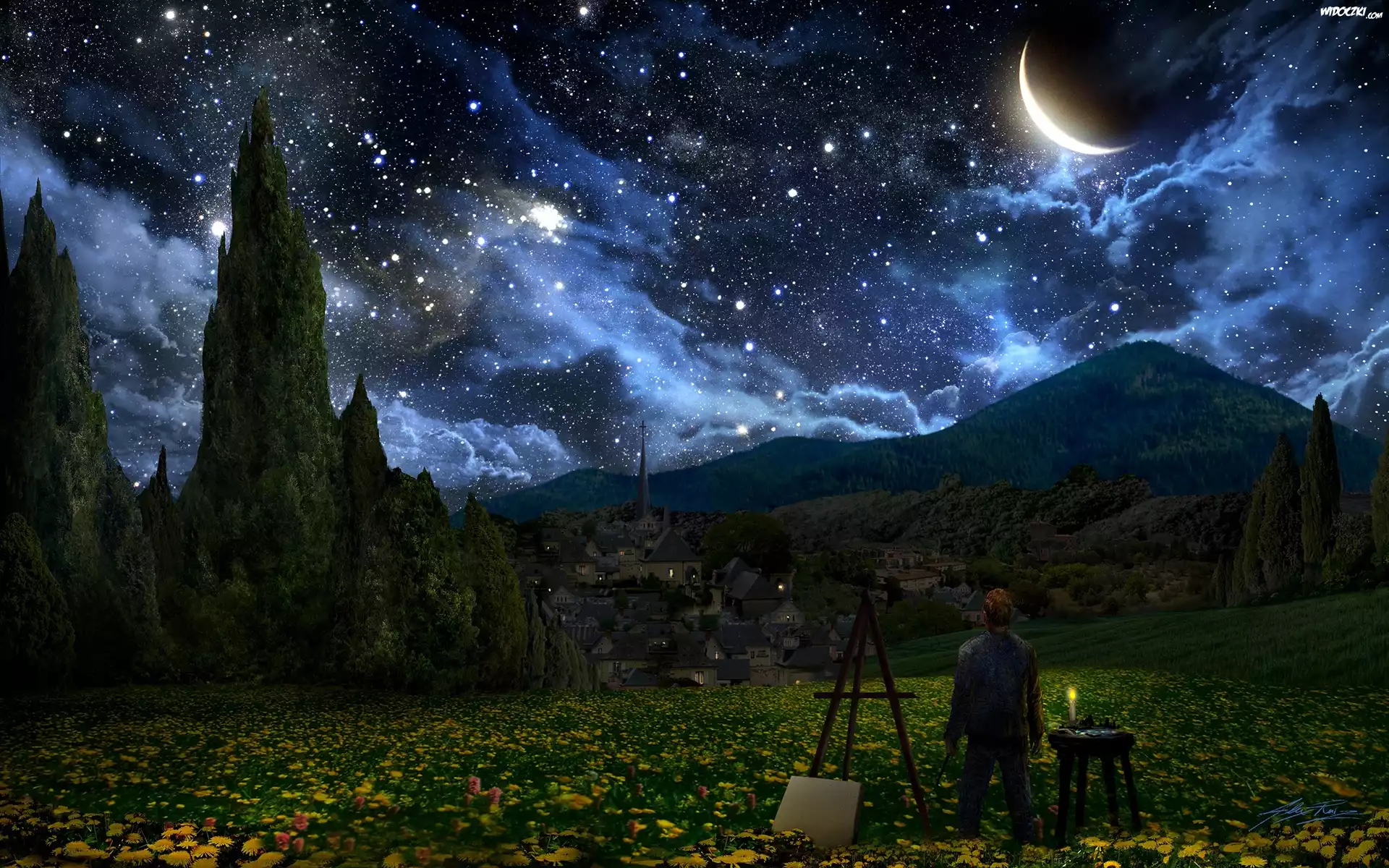 Zdjęcia, Księżyc, Drzewa, Obraz, Vincent, Van, Gogh