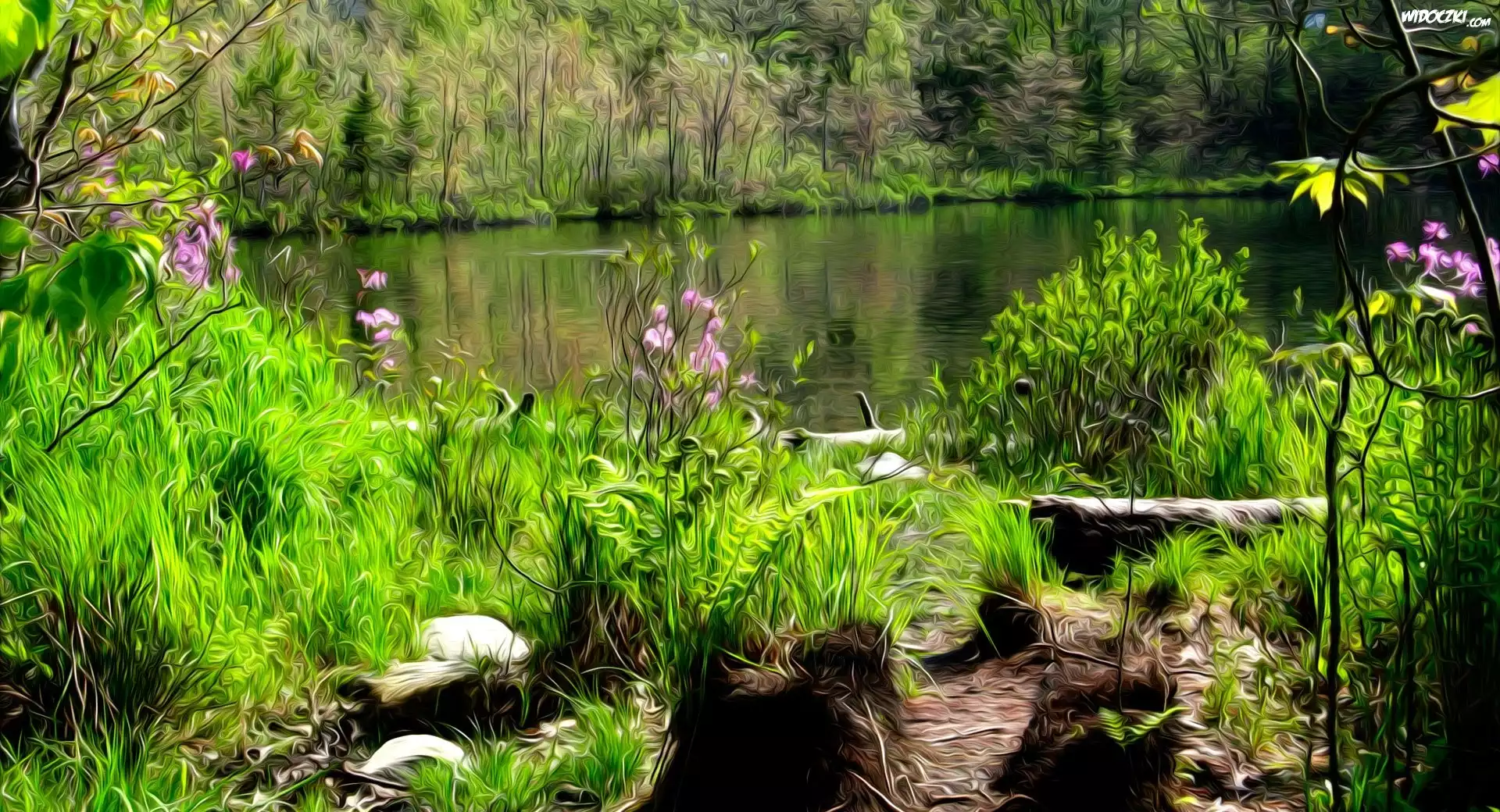 Zdjęcia, Jeziorko, Kwiatki, Roślinność