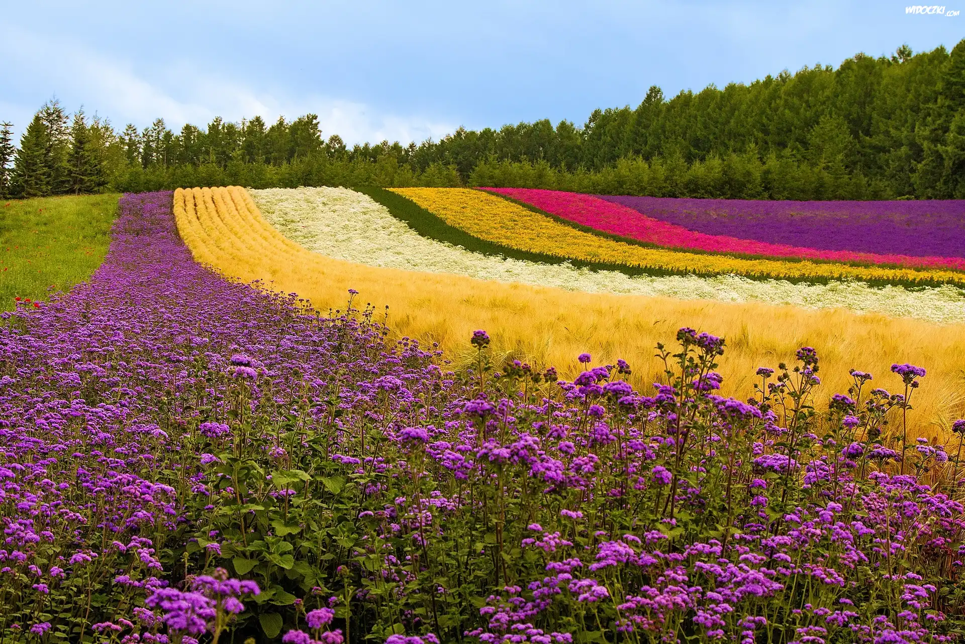Zdjęcia, Kwiatowe, Pole, Wzgórze, Las