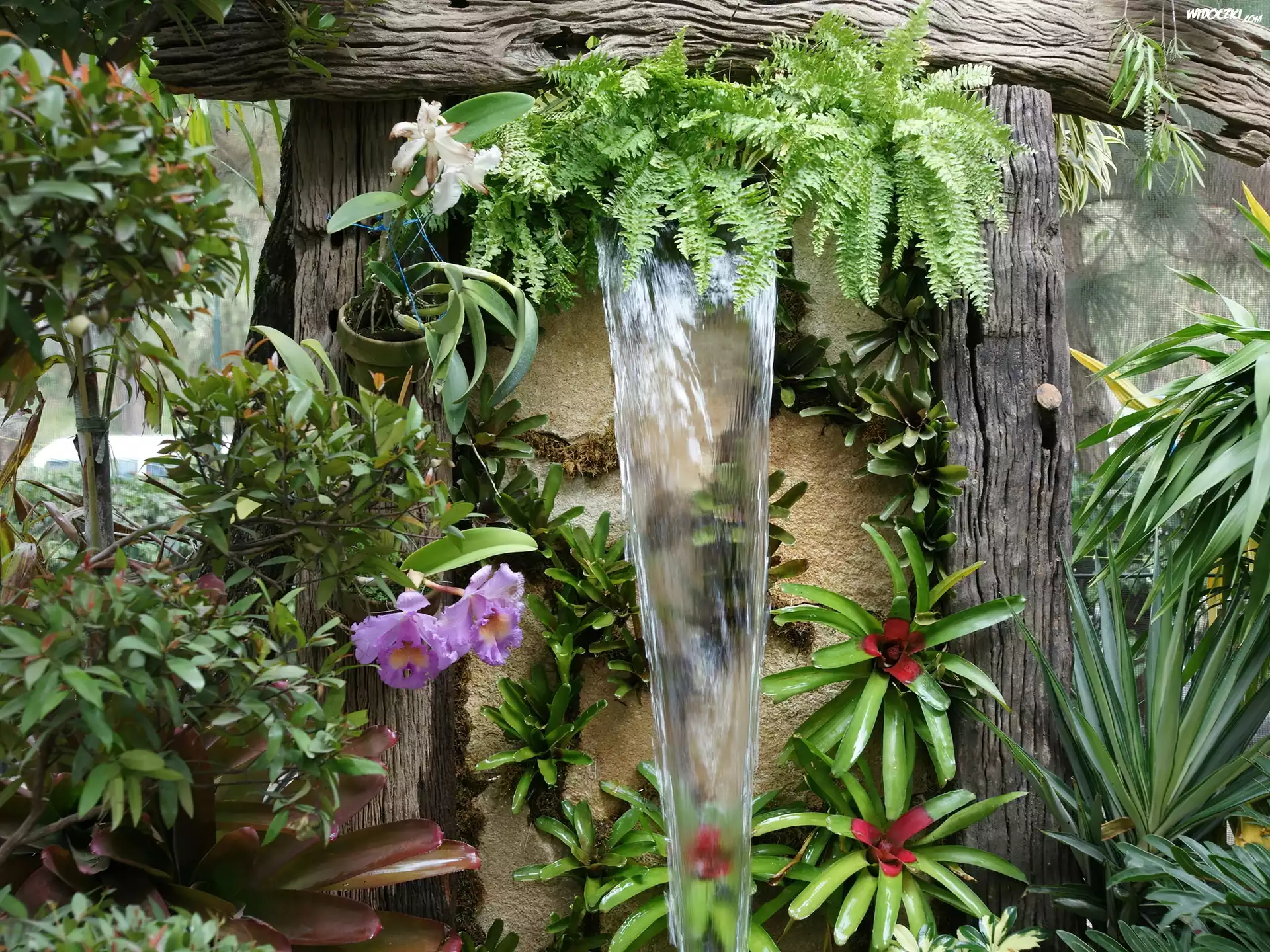Zdjęcia, Ogród, Kwiatowy, Fontanna