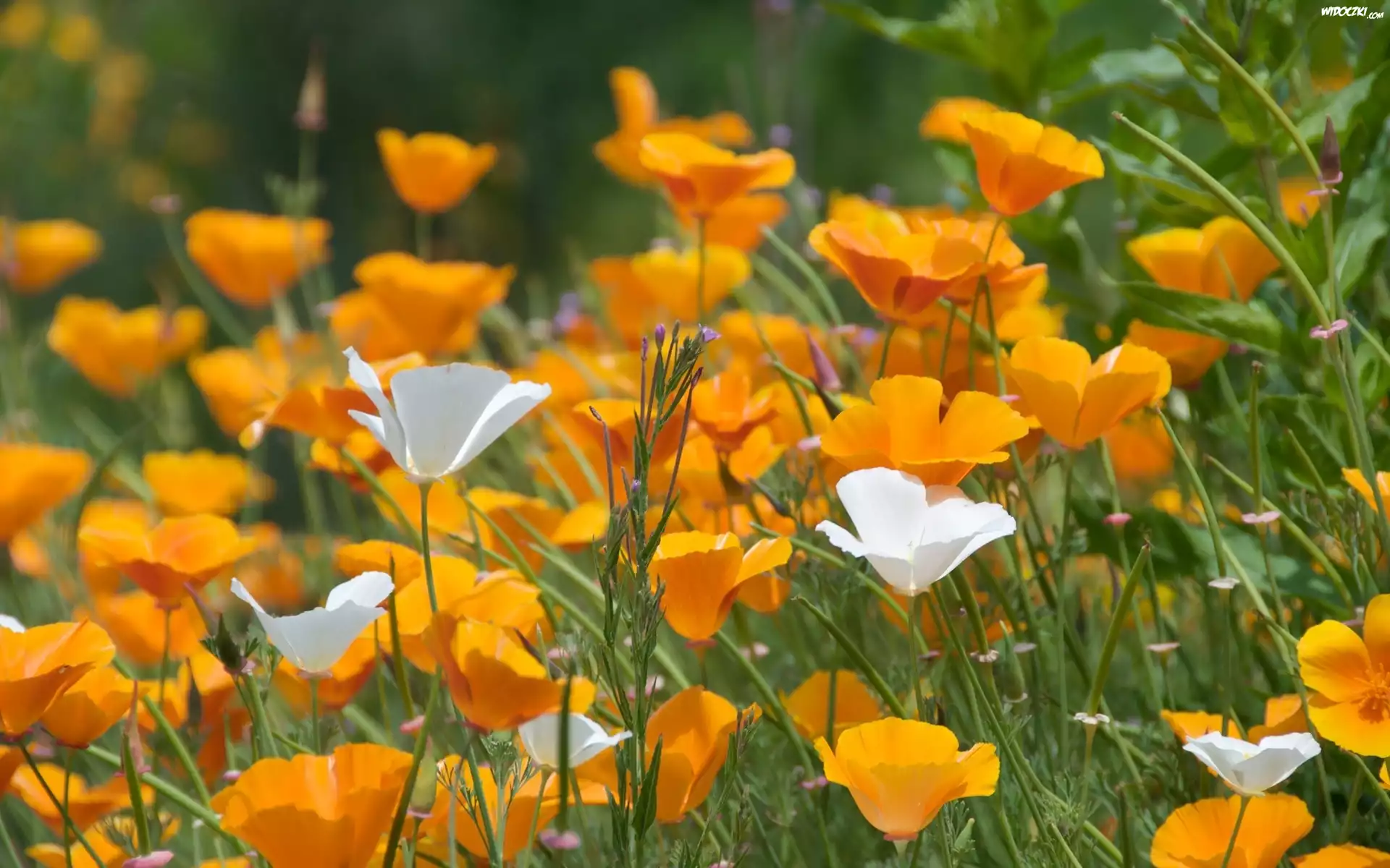Zdjęcia, Kwiaty, Żołto, Białe, Łąka