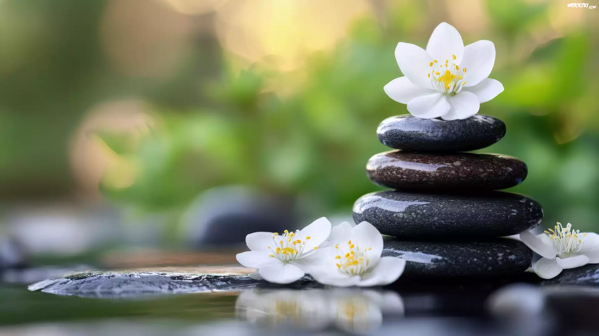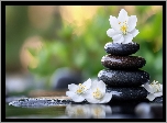 Zdjęcia, Ciemne, Kamienie, Białe, Kwiaty
