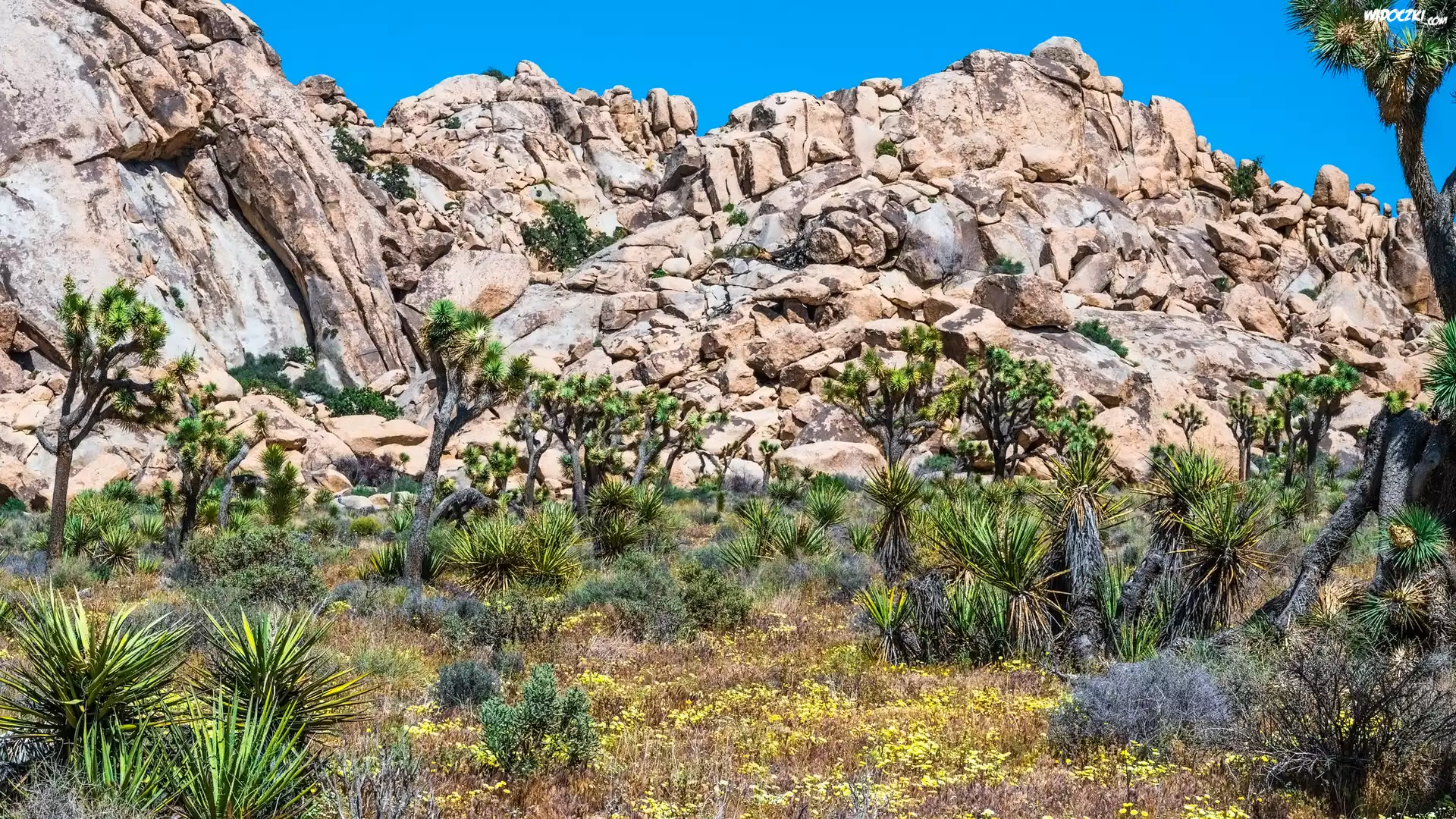 Park Narodowy Joshua Tree, Góry, Rośliny, Kwiaty, Drzewa, Kalifornia, Stany Zjednoczone