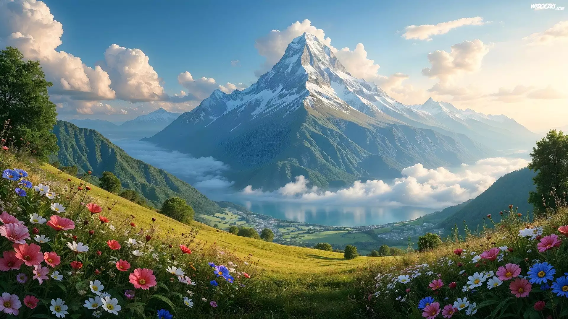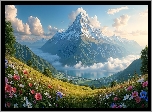 Zdjęcia, Góry, Jezioro, Łąka, Kwiaty