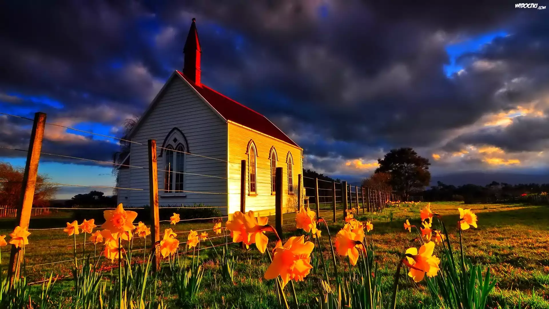 Kościółek, Kwiaty, Chmury