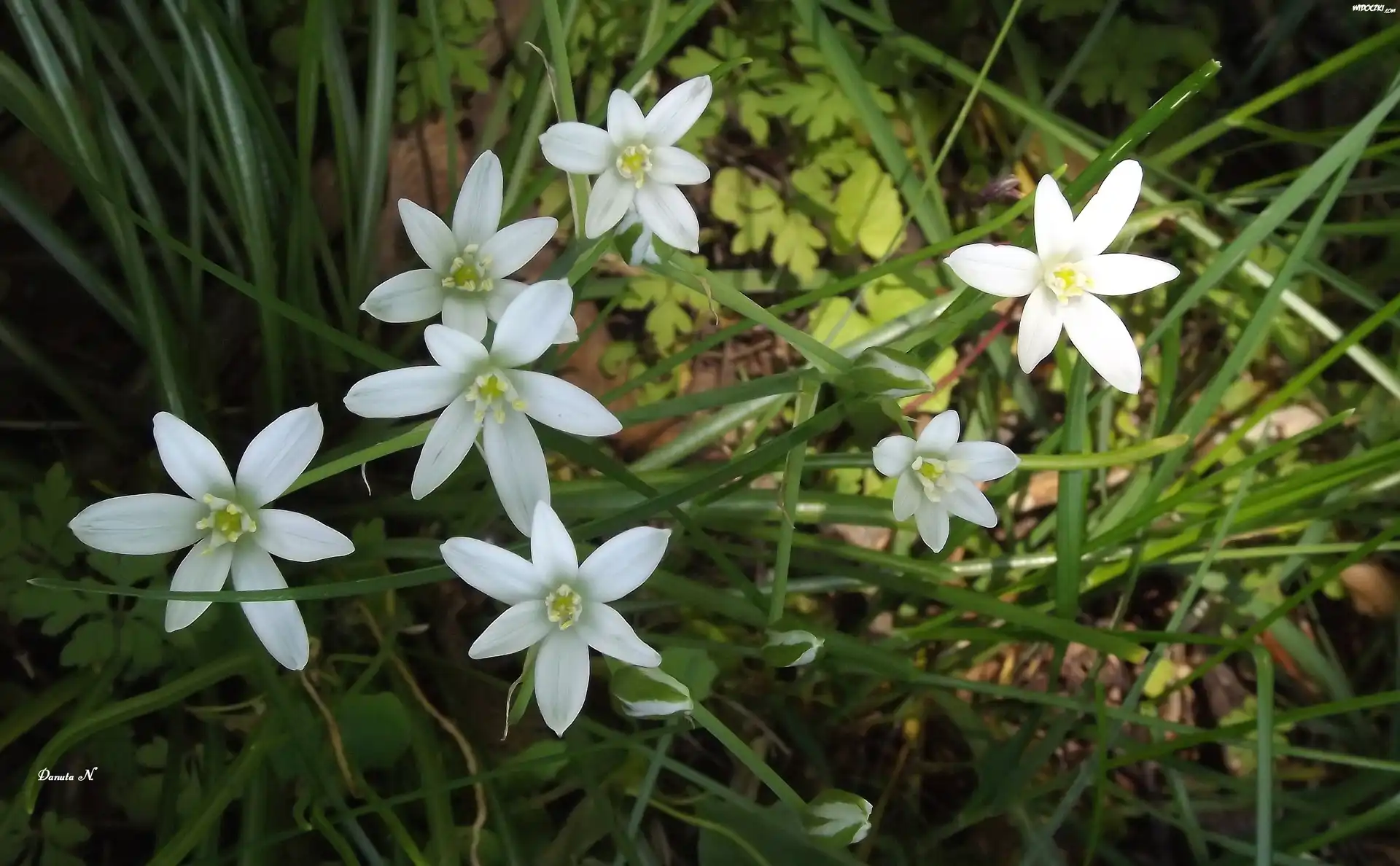 Zdjęcia, Kwiaty, Białe, Liście, Trawy, Las, Lato