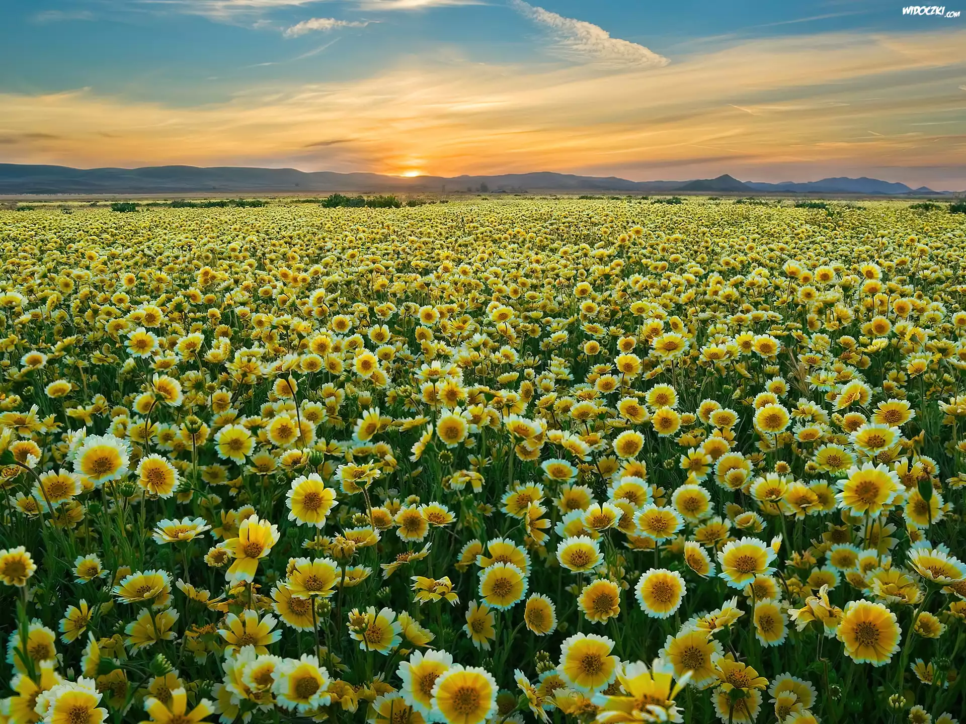 Zdjęcia, Polne, Kwiaty, Zachód, Słońca, Carrizo Plain National Monument